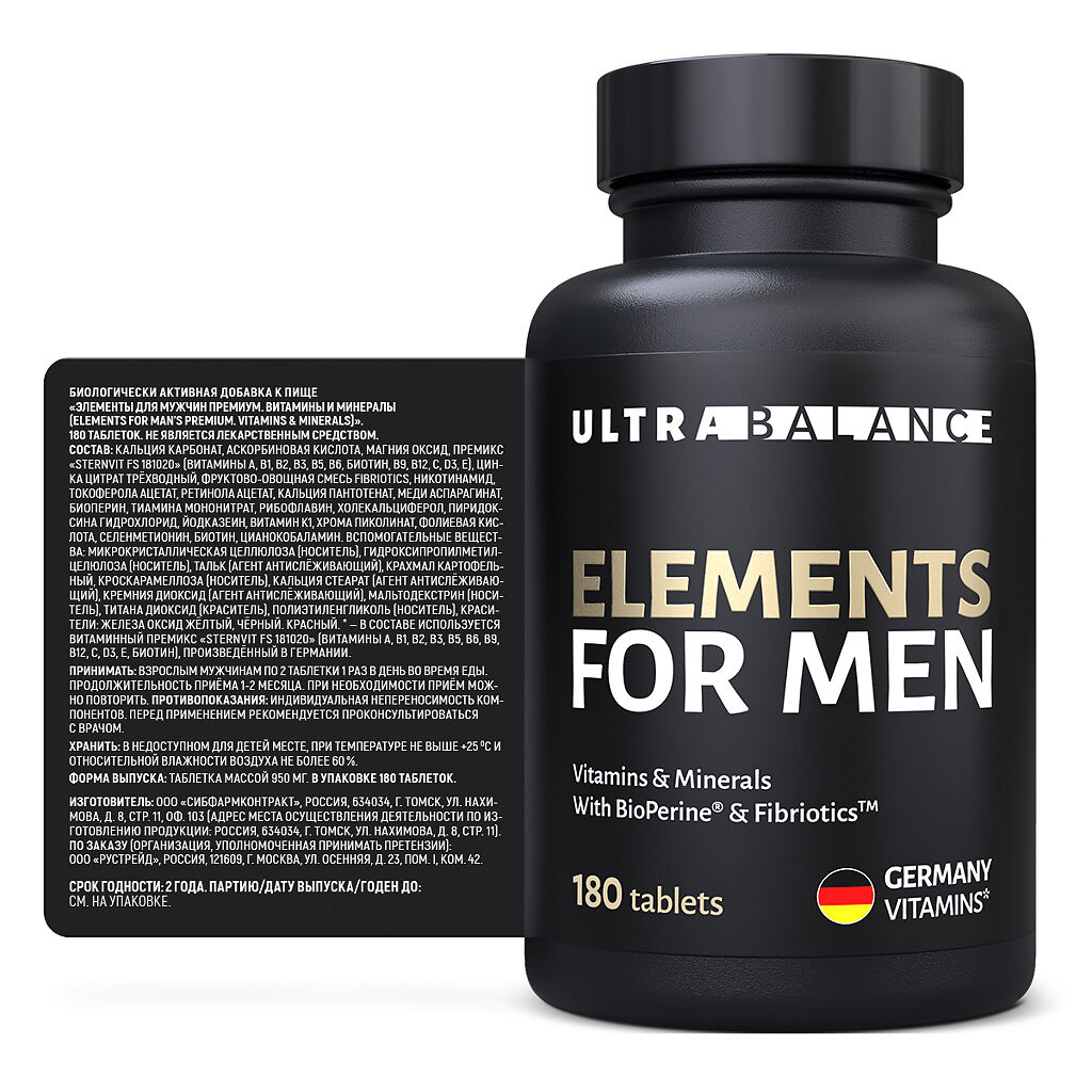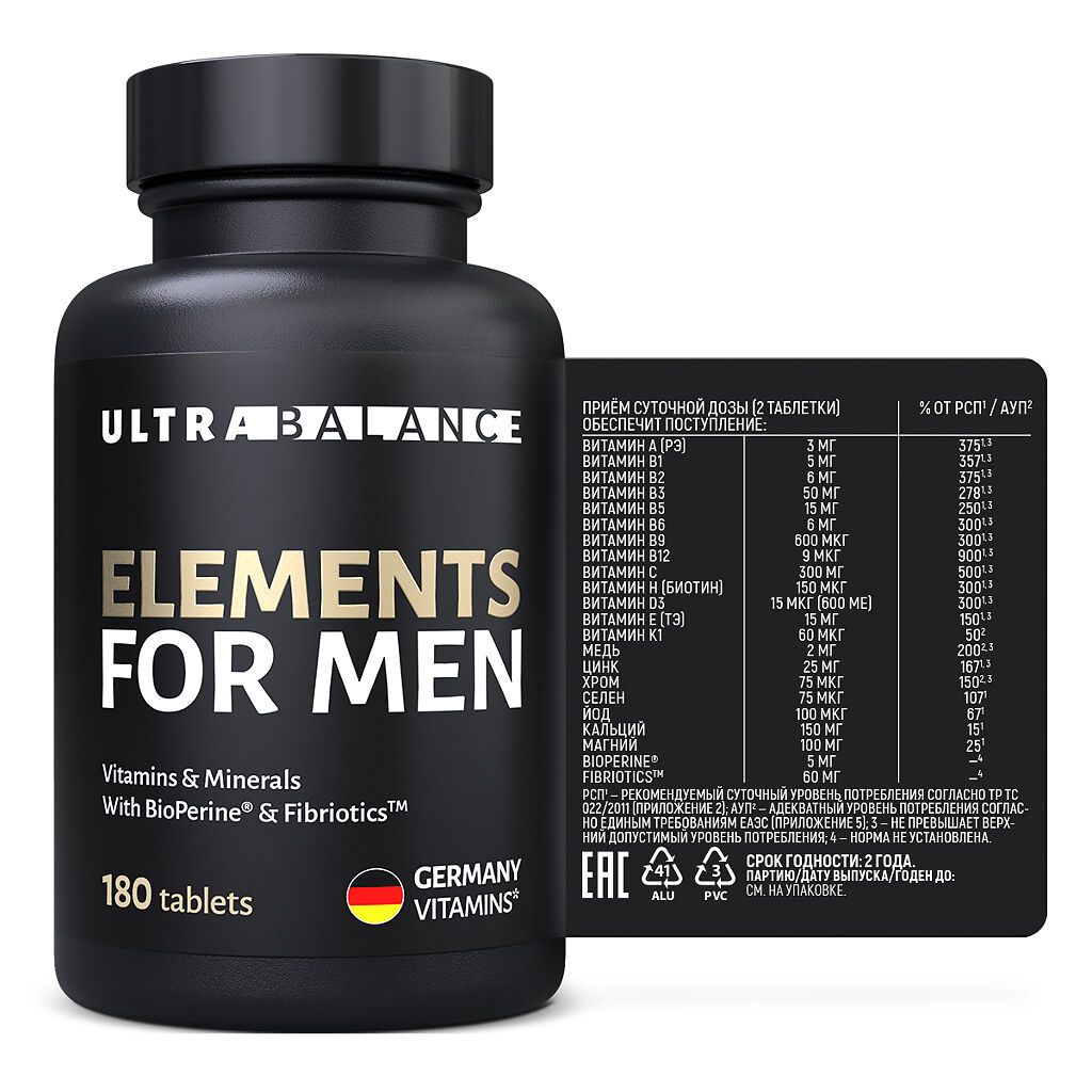 Элементы для мужчин Премиум Витамины и минералы / Elements for Men Premium Vitamins & Minerals UltraBalance таблетки массой 950 мг 180 шт