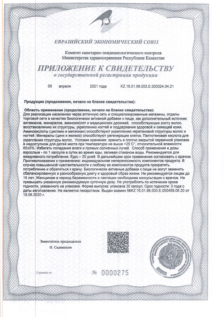 ** - не превышает верхний допустимый уровень суточного потребления, согласно Приложению 5 «Единые санитарно-эпидемиологические и гигиенические требования к товарам, подлежащим санитарно-эпидемиологическому надзору (контролю)» ТС ЕврАзЭС, утверждённые Решением КТС №299 от 28.05.2010.