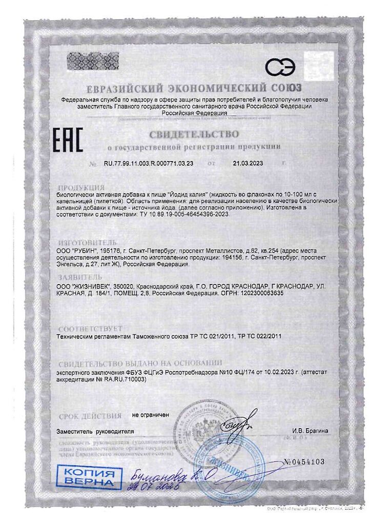 Документы Жизнивек Йодид калия жидкость во фл 30 мл 1 шт