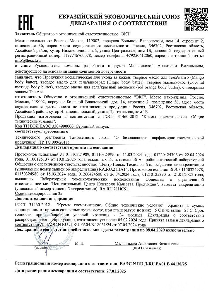 • 📒 Подробная инструкция по применению The Act Твердое масло-баттер для тела питательный виноград 180 г 1 шт