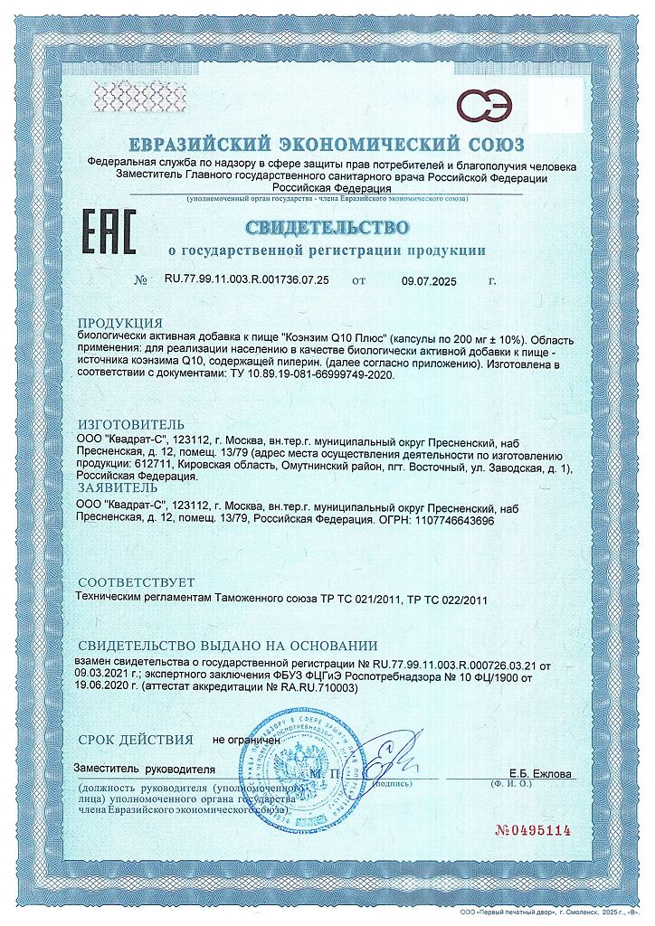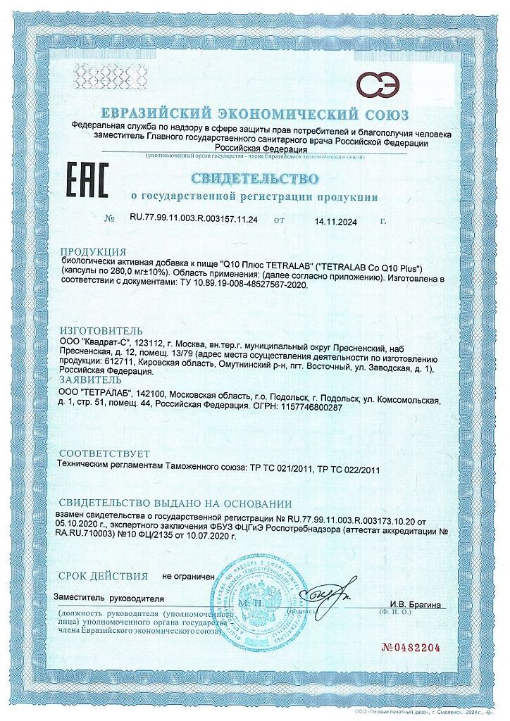 Документы Tetralab Q10 Плюс коэнзим / Co Q10 Plus капсулы по 280 мг 60 шт