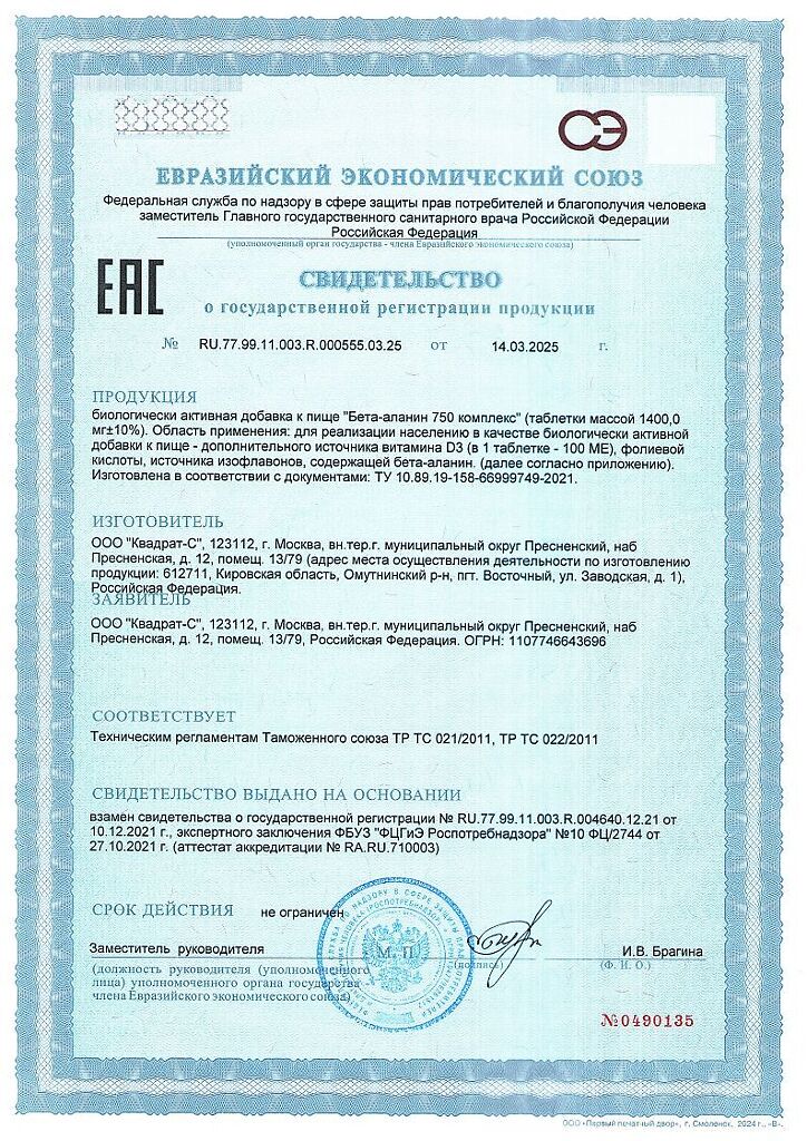 Документы Tetralab Бета-Аланин 750 комплекс таблетки массой 1400 мг 60 шт