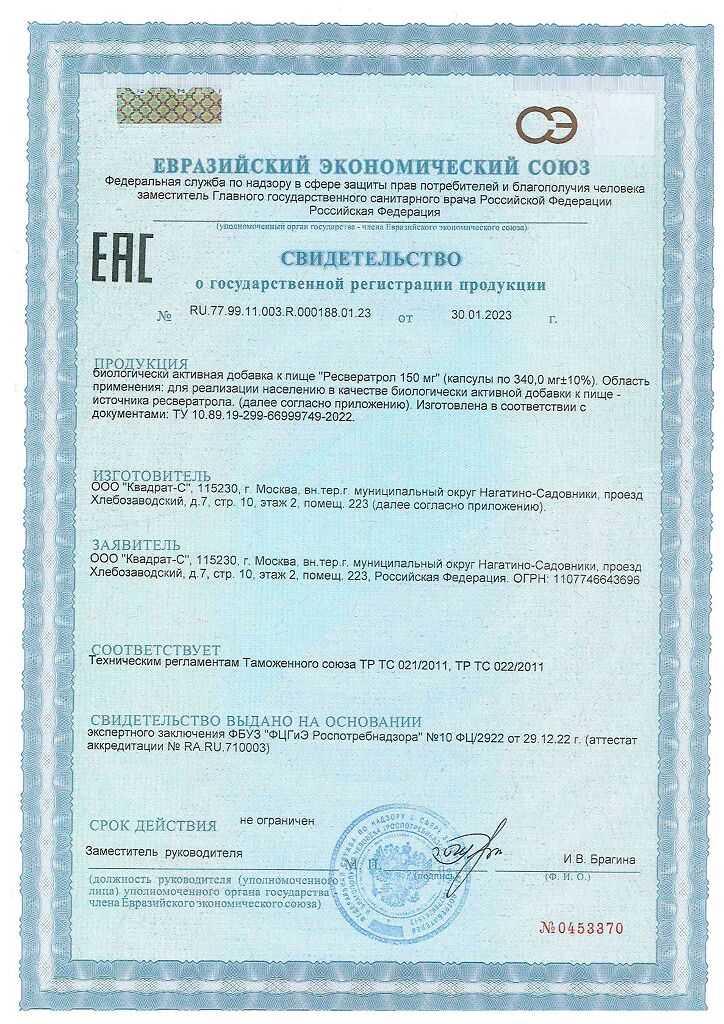 Документы Tetralab Ресвератрол 150 мг капсулы по 340 мг 60 шт