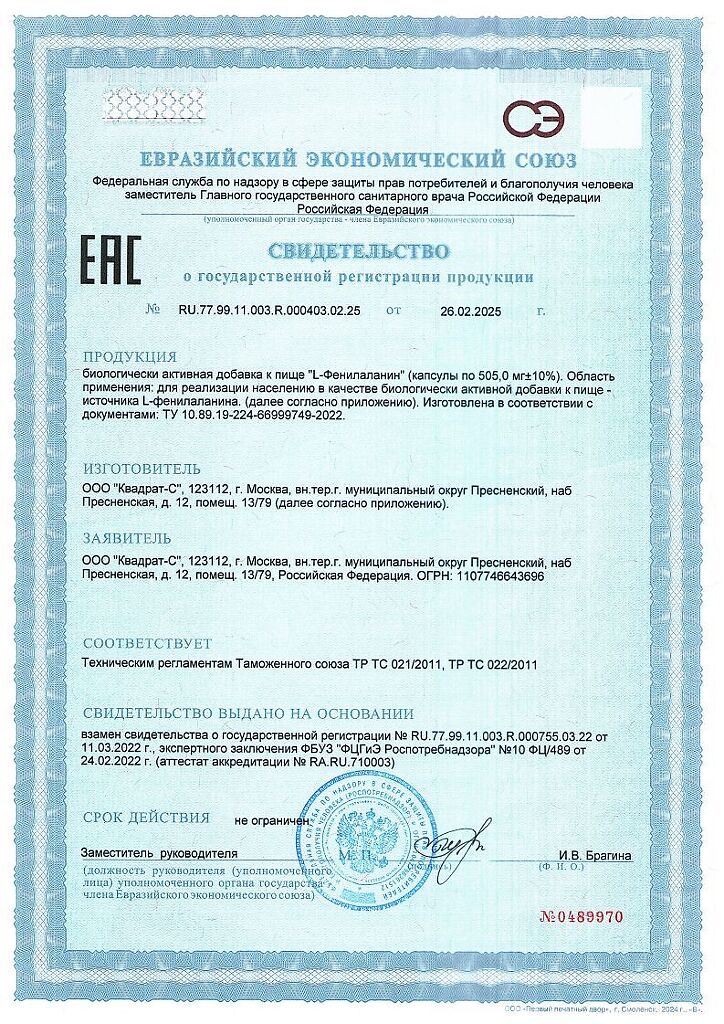 Документы Tetralab L-Фенилаланин капсулы по 505 мг 60 шт