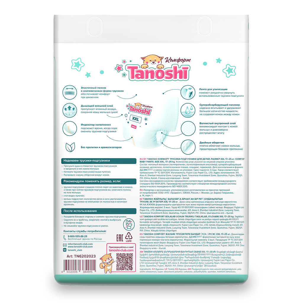 • 📒 Подробная инструкция по применению Трусики-подгузники Tanoshi Comfort Baby для детей размер XXL (17-25 кг) 26 шт