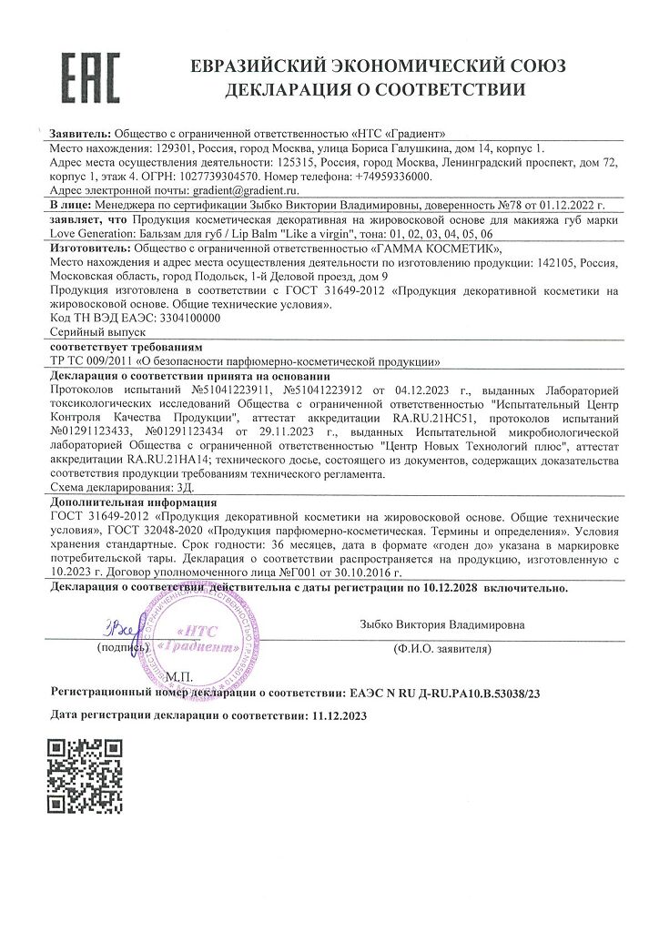• 📒 Подробная инструкция по применению Love Generation Бальзам для губ Like a virgin тон 01 1 шт