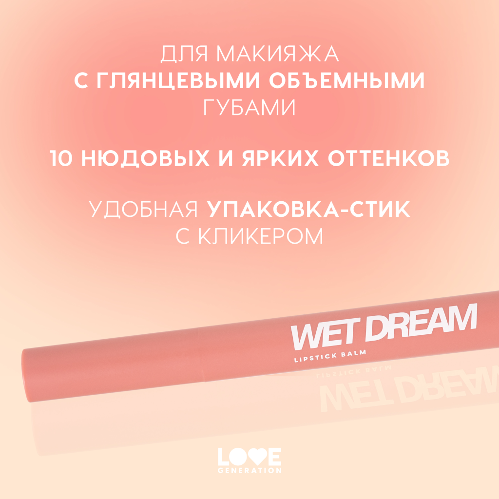 Love Generation Помада-бальзам Wet Dream тон 02 1 шт: отзывы покупателей и фармацевтов