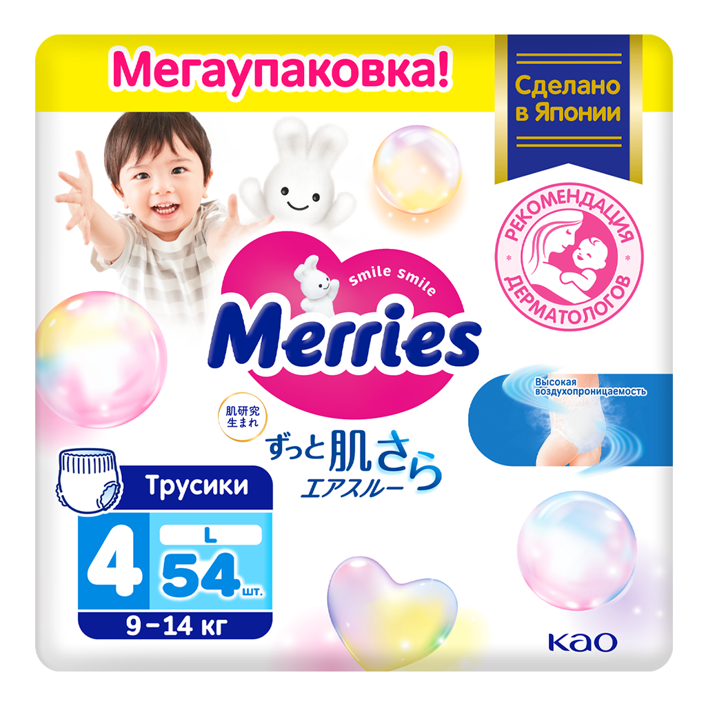 • 🏪 Купить Merries Трусики-подгузники размер L (9-14 кг) 54 шт можно на сайте и в наших аптеках в Екатеринбург