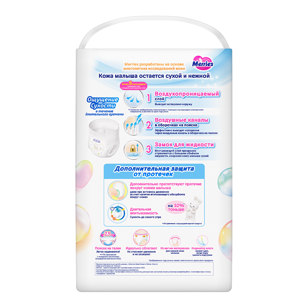 • 📒 Подробная инструкция по применению Merries Трусики-подгузники размер L (9-14 кг) 54 шт