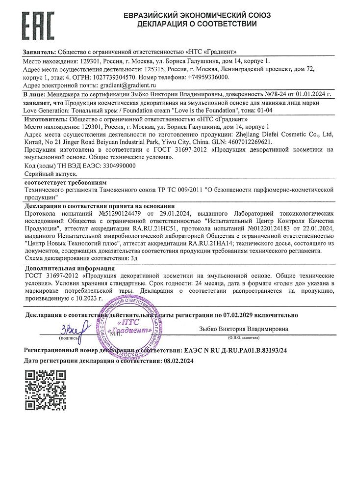 • 📒 Подробная инструкция по применению Love Generation Тональный крем Love is the Foundation тон 03 30 мл 1 шт