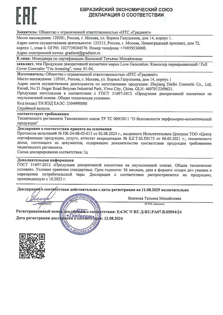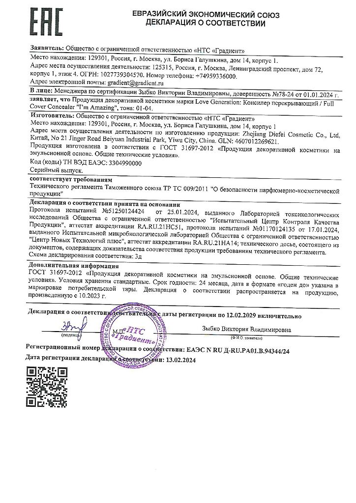 Документы Love Generation Консилер перекрывающий I’m Amazing тон 01 5 мл 1 шт