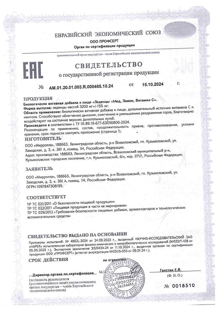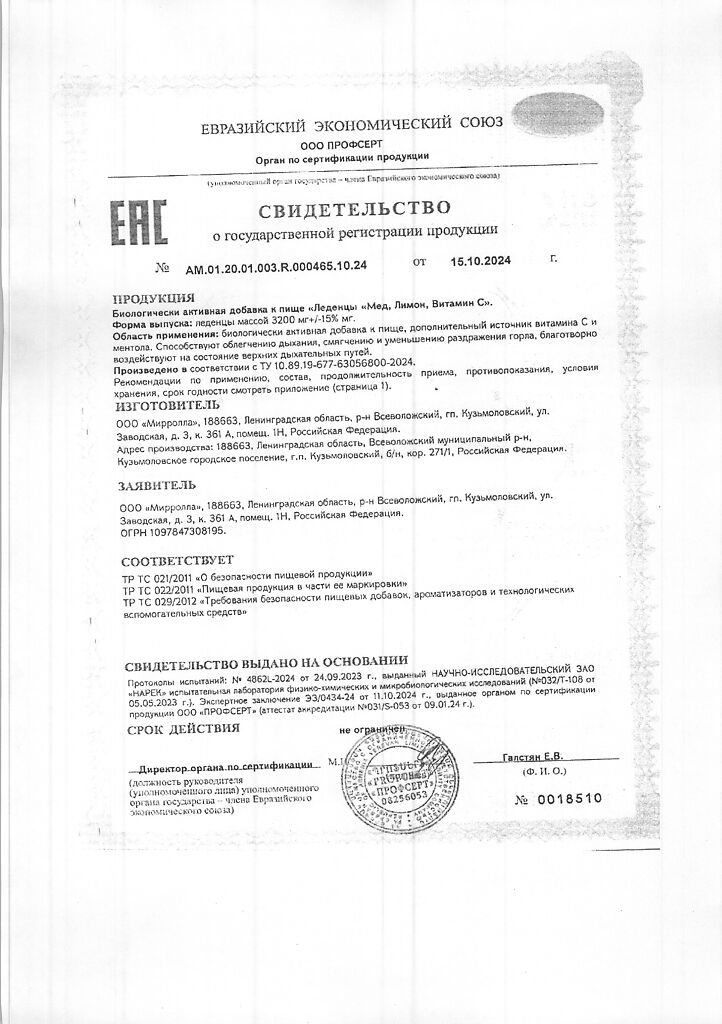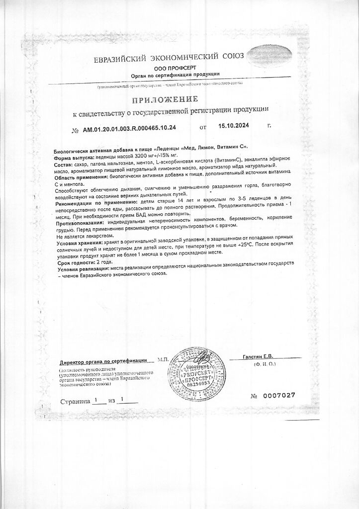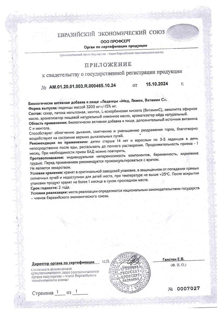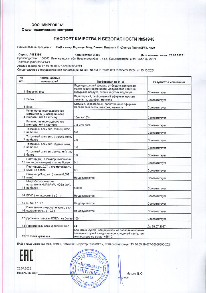 Документы Доктор ГриппOFF Мед, Лимон, Витамин С леденцы массой 3200 мг 20 шт