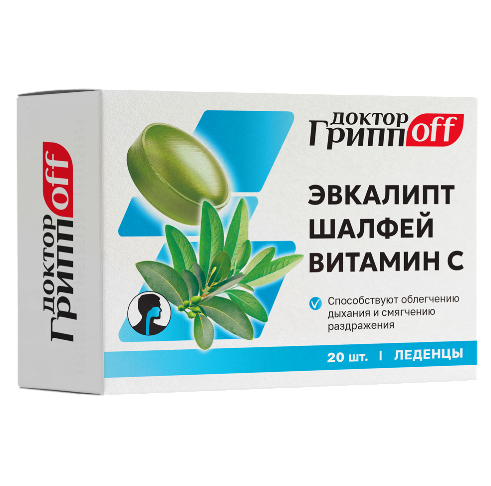 Доктор ГриппOFF Эвкалипт, Шалфей, Витамин С леденцы массой 3200 мг 20 шт: отзывы покупателей и фармацевтов