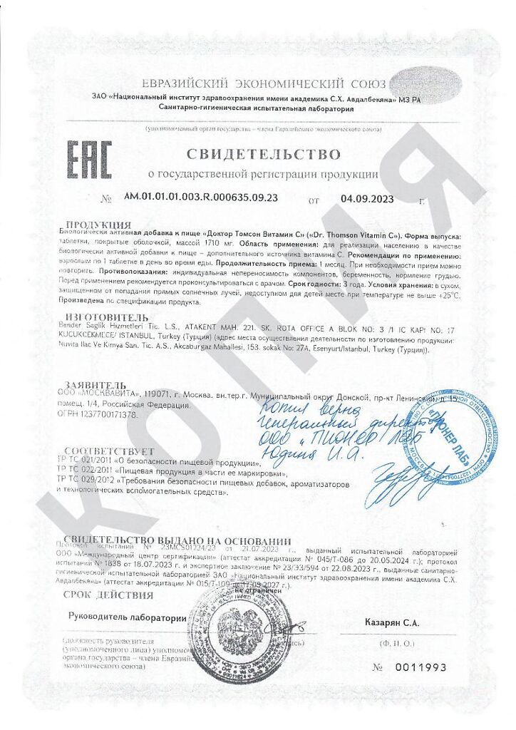 Документы Dr. Thomson Vitamin C / Доктор Томсон Витамин С 1000 мг таблетки покрыт.об. массой 1710 мг 30 шт