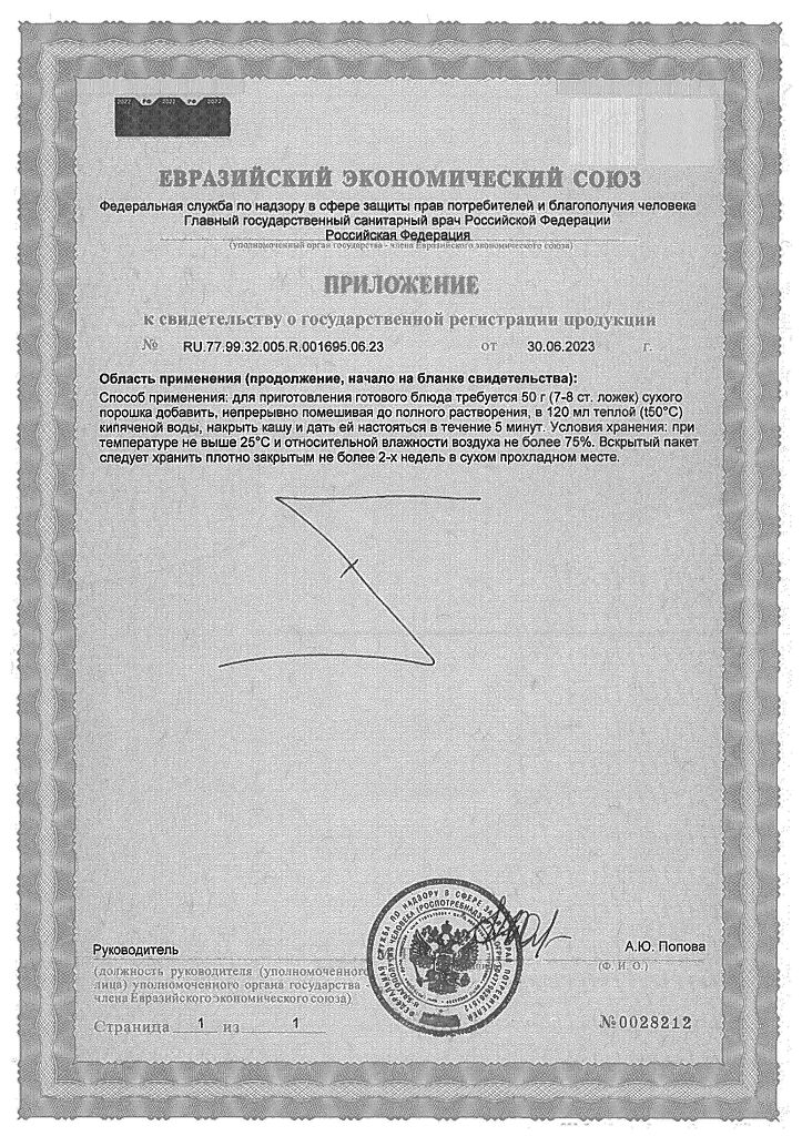 Открытую пачку с продуктом следует хранить в сухом прохладном месте не более двух недель.