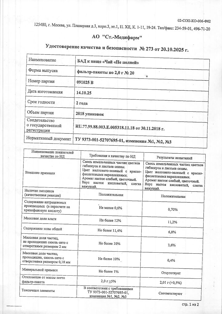Документы Love Botanica Чай Не полней фильтр-пакеты по 2,0 г 20 шт