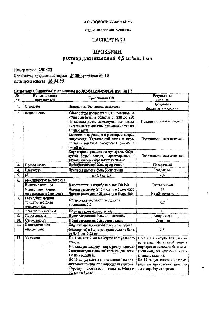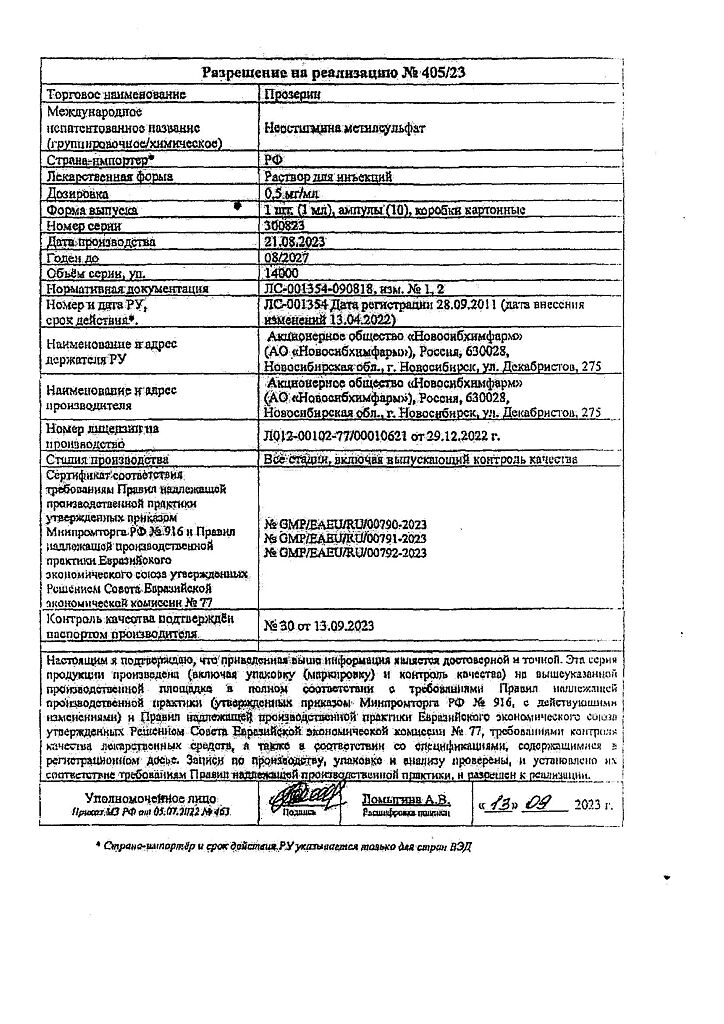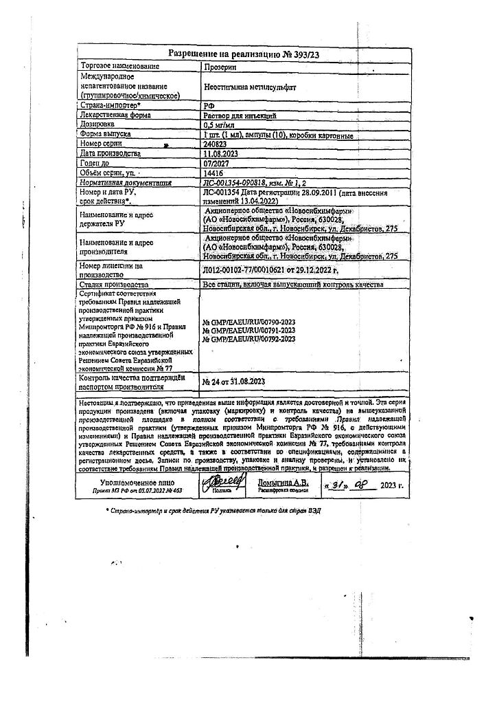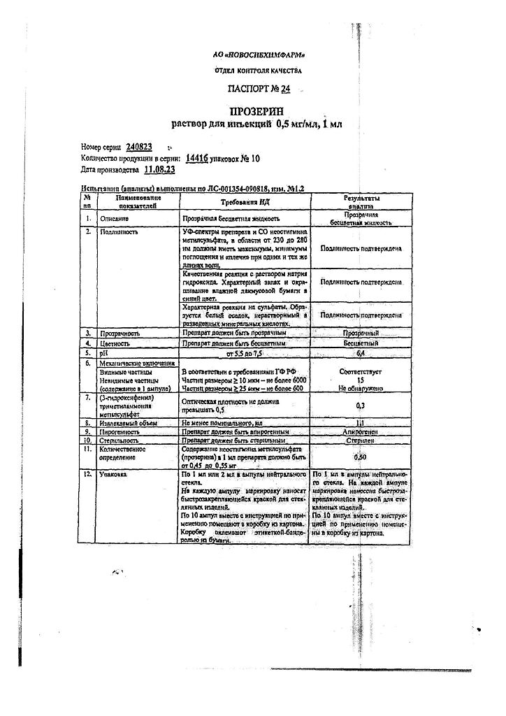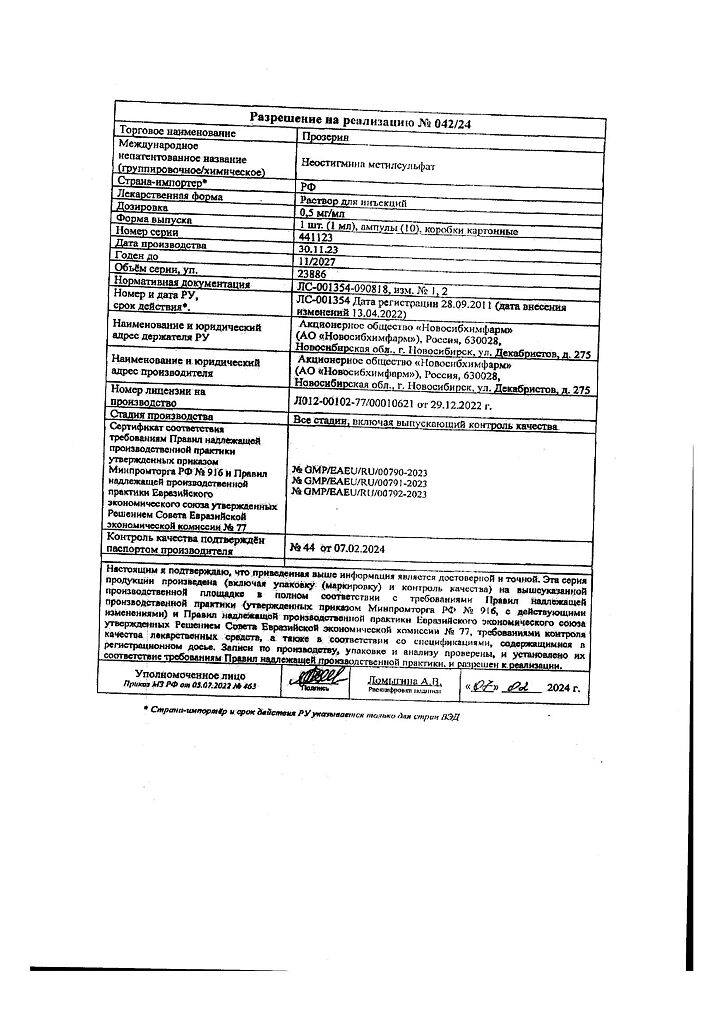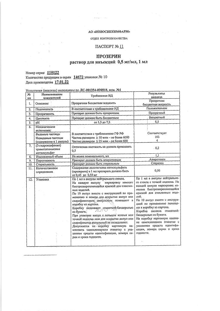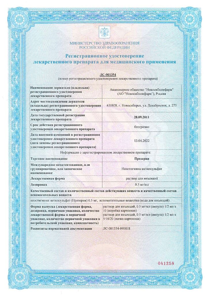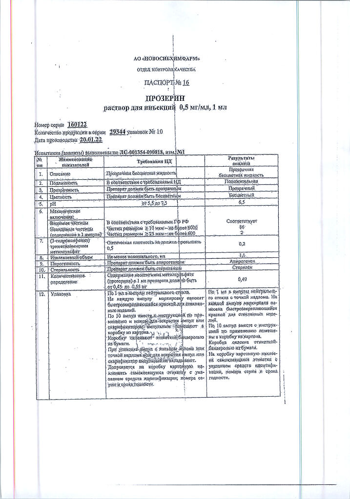 Действующее вещество: Неостигмина метилсульфат