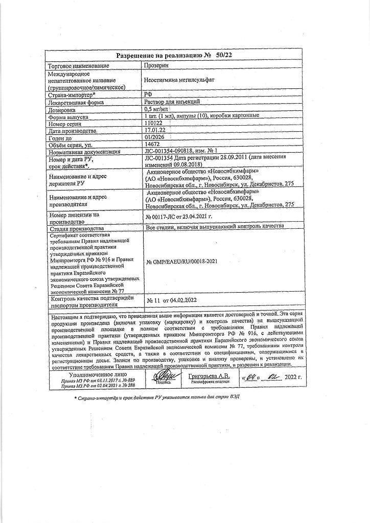 Бренд: Прозерин