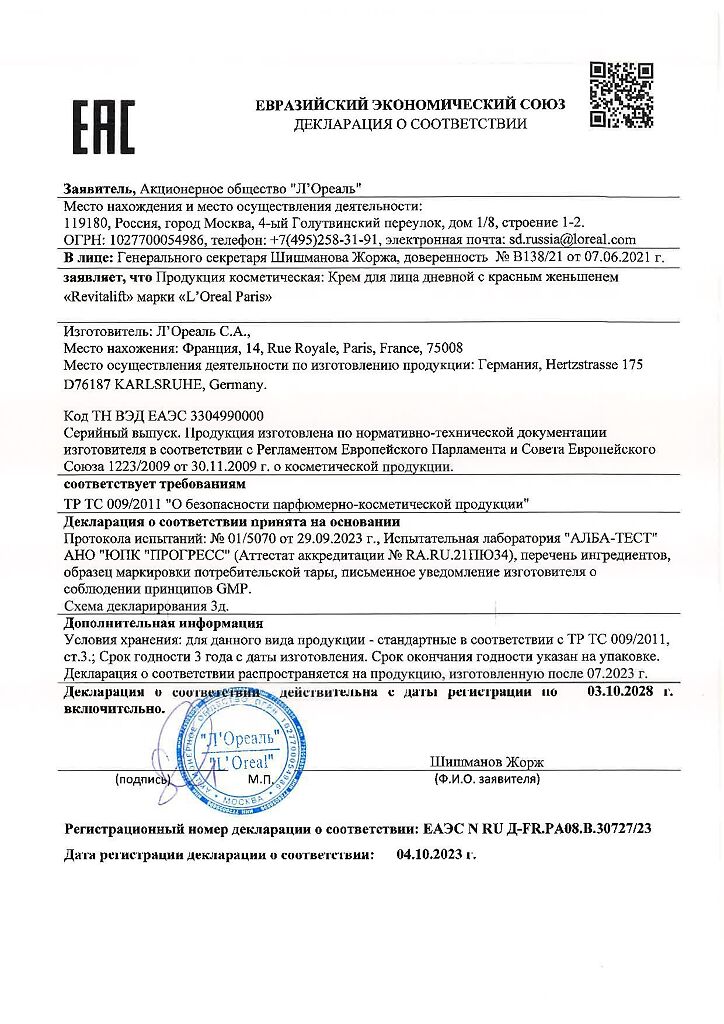 Фото Loreal Paris Revitalift Крем для лица