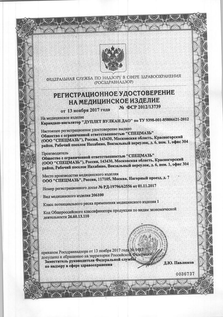 Вулкан Дао Дуплет карандаш-ингалятор 5 г 1 шт