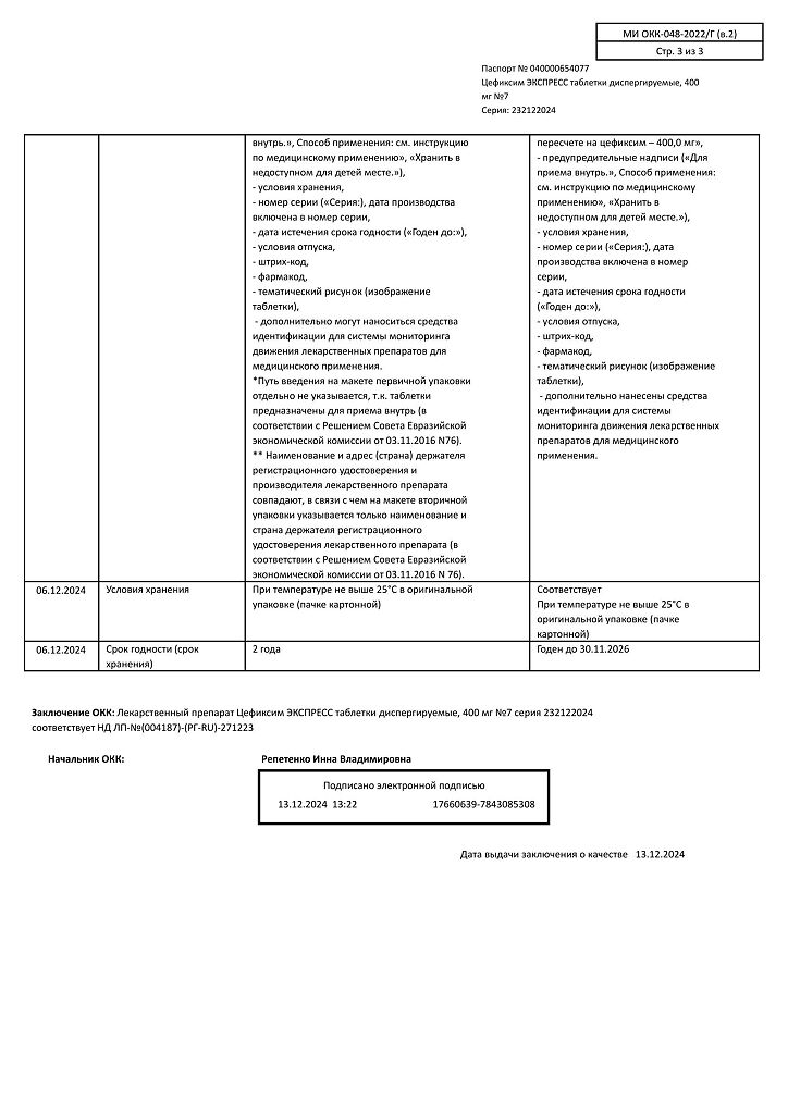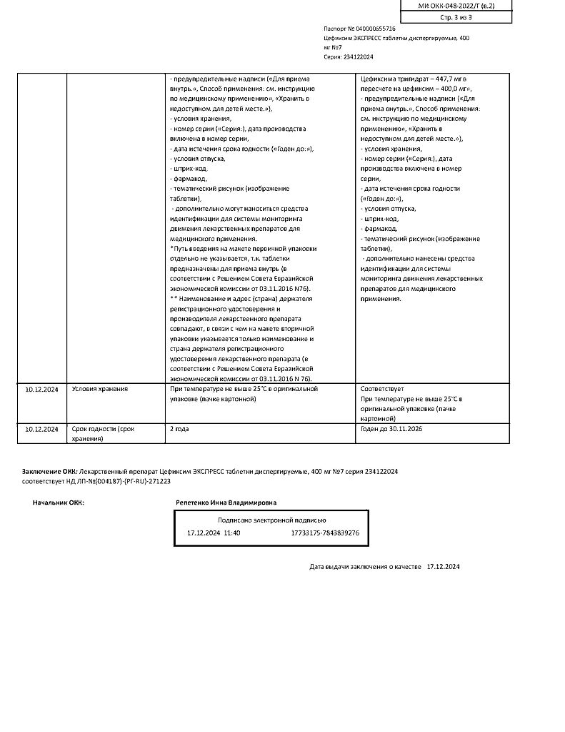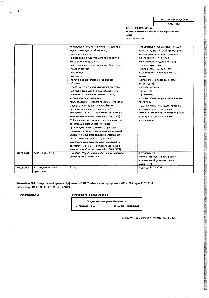 При возникновении токсического эпидермального некролиза (синдрома Лайелла), синдрома Стивенса-Джонсона, синдрома лекарственной сыпи с эозинофилией и системными проявлениями прием цефиксима должен быть прекращен, и должна быть проведена необходимая терапия.