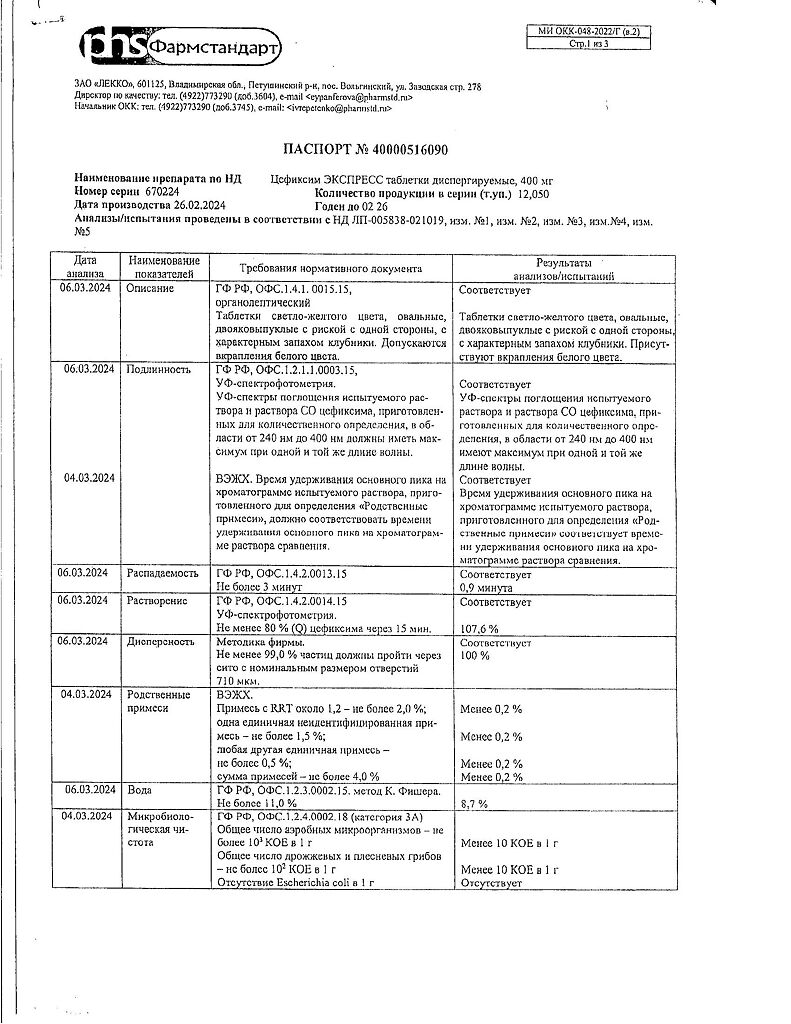 Цефиксим – полусинтетический антибиотик широкого спектра действия, из группы цефалоспоринов III поколения для приема внутрь. Оказывает бактерицидное действие. Механизм действия связан с угнетением синтеза клеточной стенки бактерий. Цефиксим устойчив к действию β-лактамаз, продуцируемых многими грамположительными и грамотрицательными бактериями.