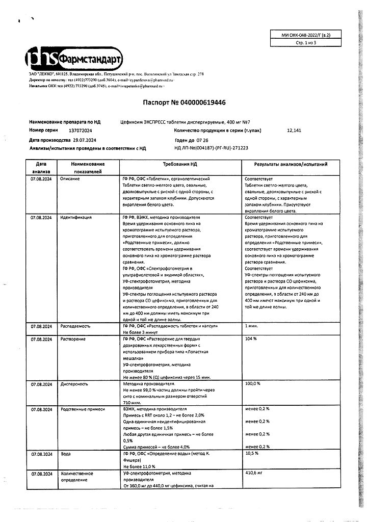 Диспергируемые таблетки следует растворять только в воде. Во время лечения возможна ложноположительная прямая реакция Кумбса и ложноположительная реакция мочи на глюкозу при использовании некоторых тест-систем для экспресс-диагностики.