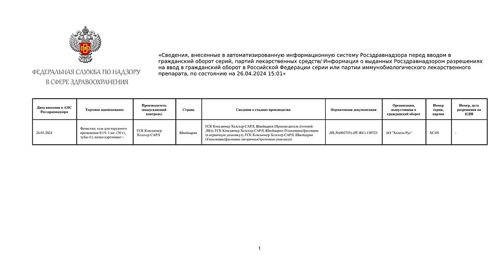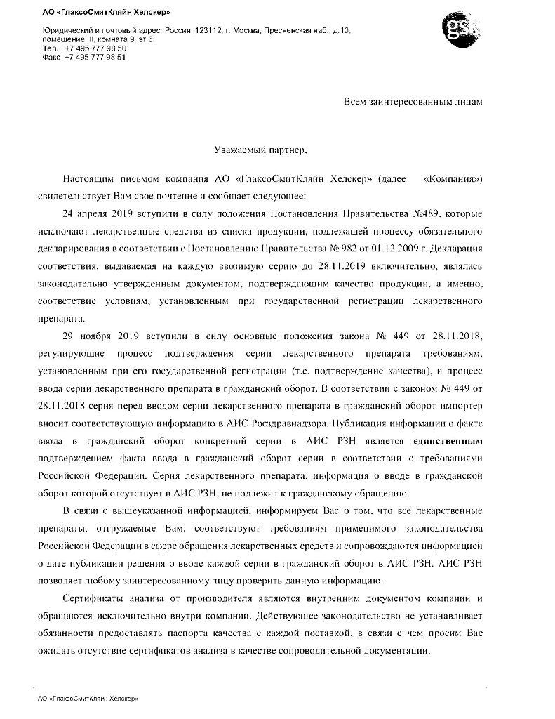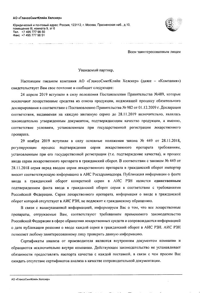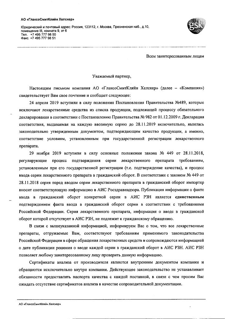 Страница носит информационный характер о наличии препаратов. Перед назначением и применением проконсультируйтесь с врачом