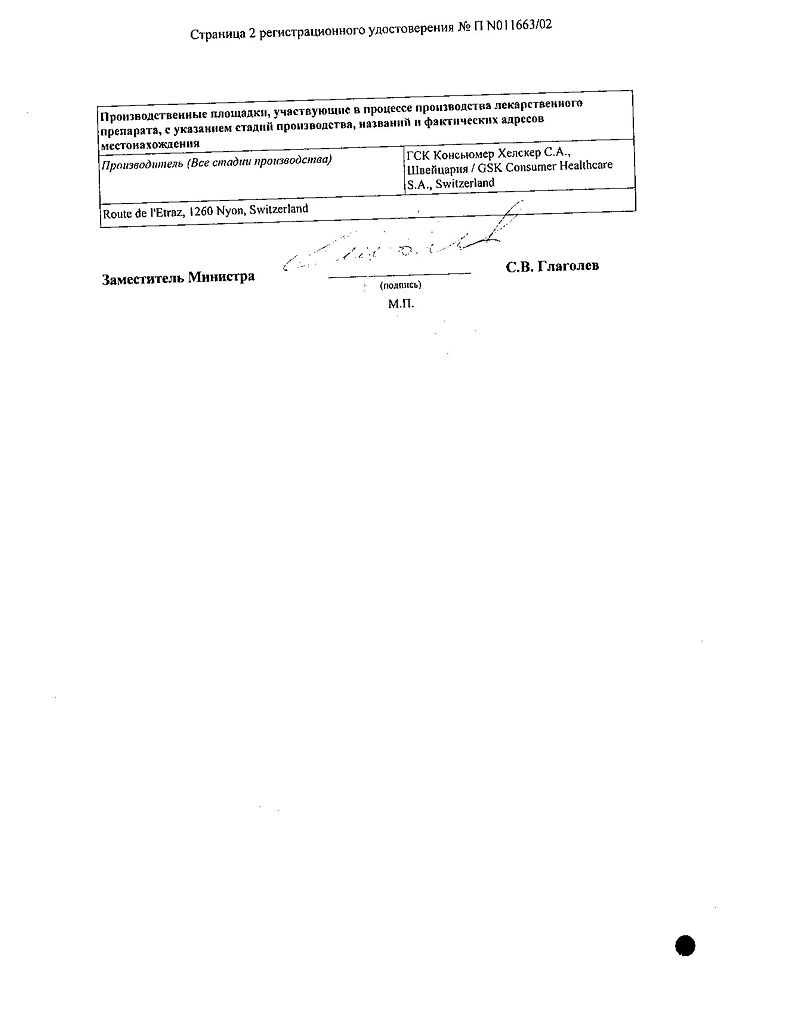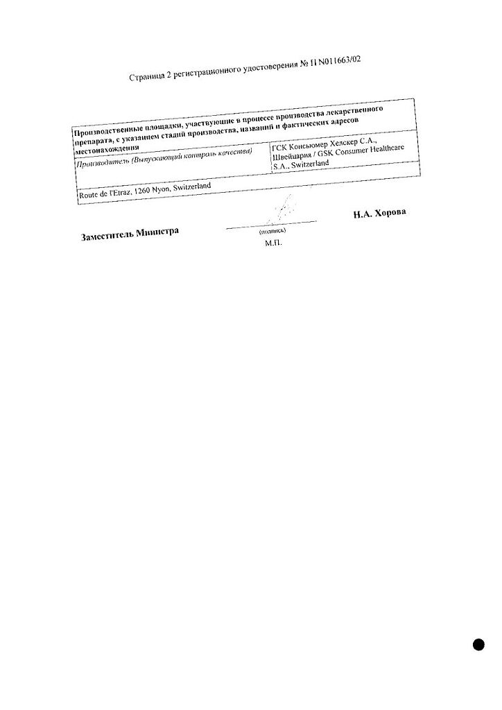 Производитель: ГСК Консьюмер Хелскер С.А., Швейцария
