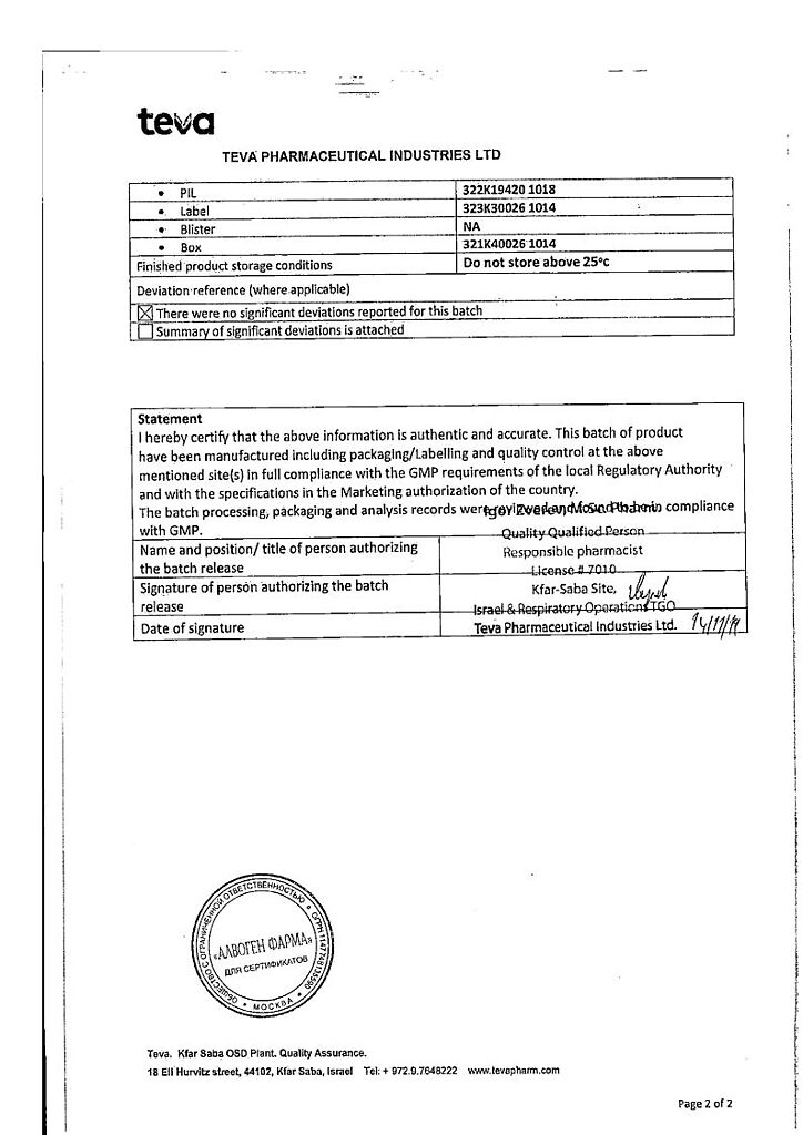 Производитель: Каталент Джермани Эбербах ГмбХ, Германия