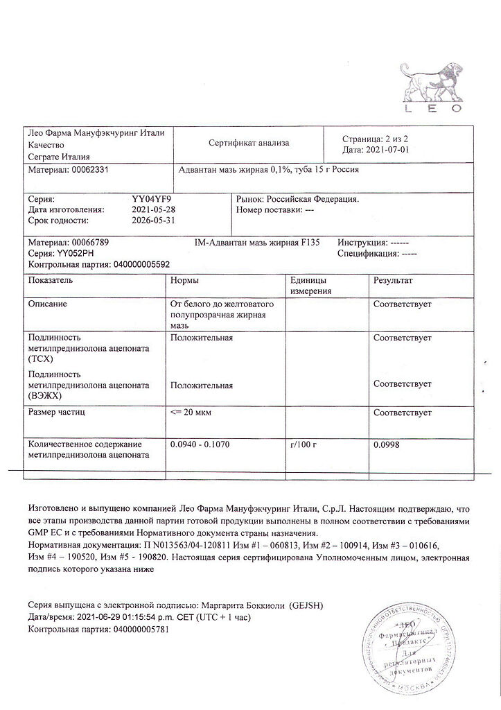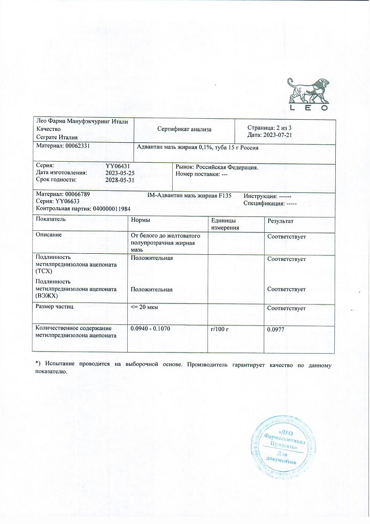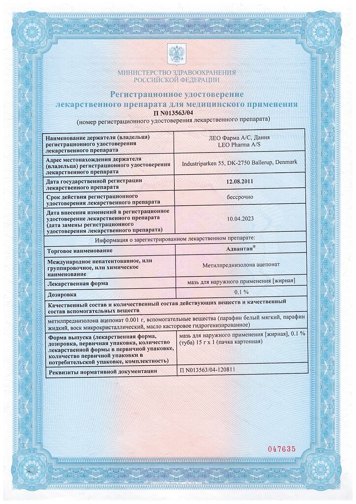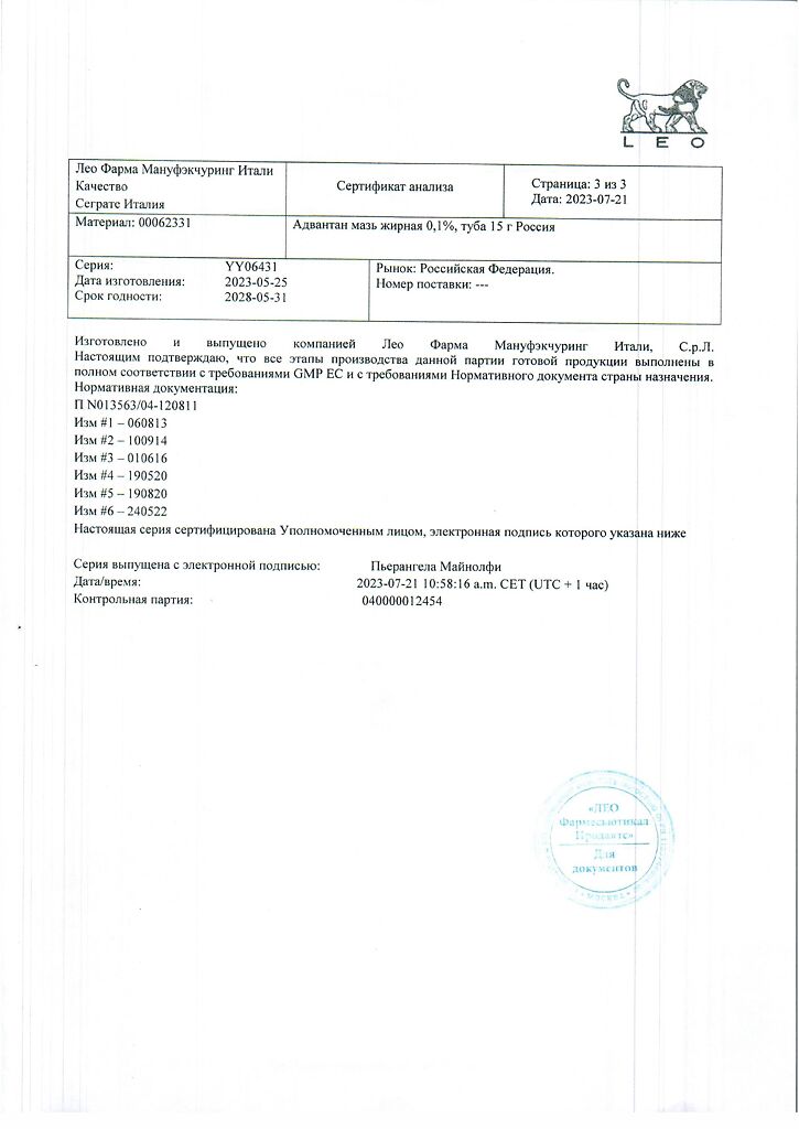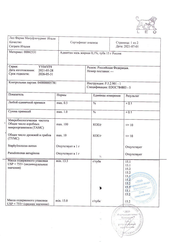 Документы Адвантан мазь для наружного применения жирная 0,1 % 15 г 1 шт