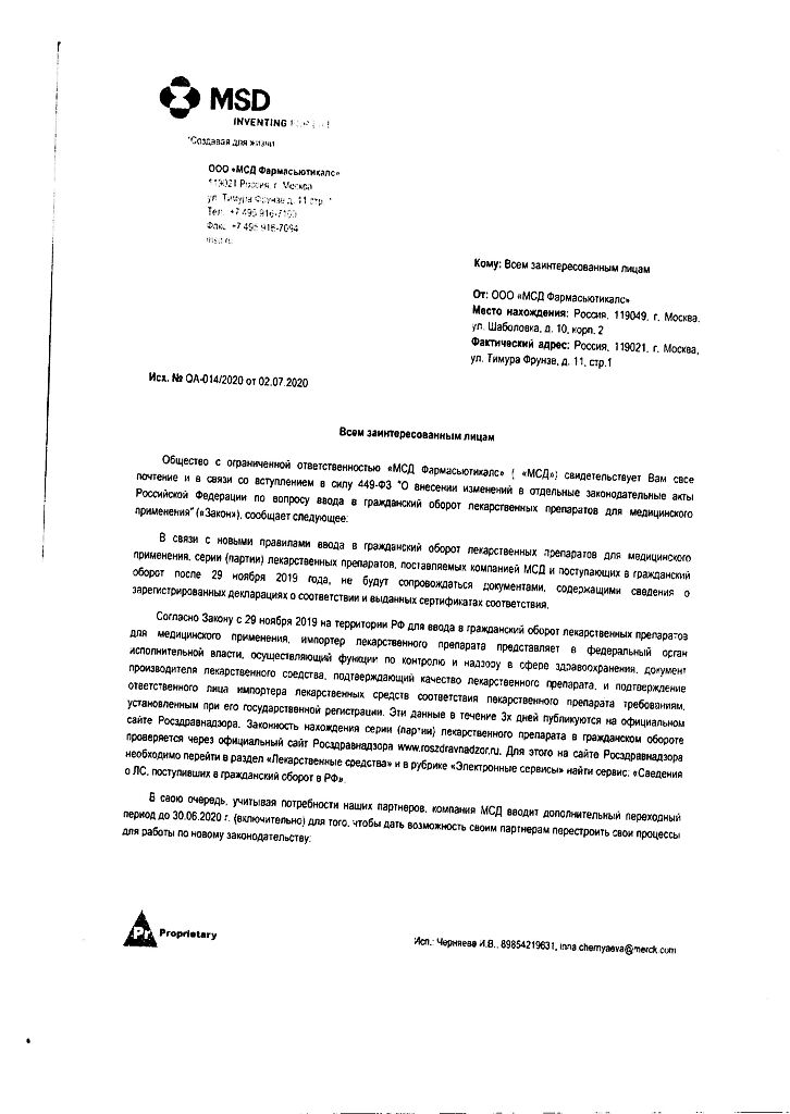Страница носит информационный характер о наличии препаратов. Перед назначением и применением проконсультируйтесь с врачом