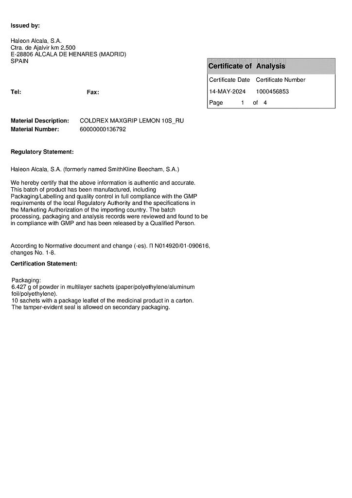 Все формы Колдрекс МаксГрипп со вкусом лимона
