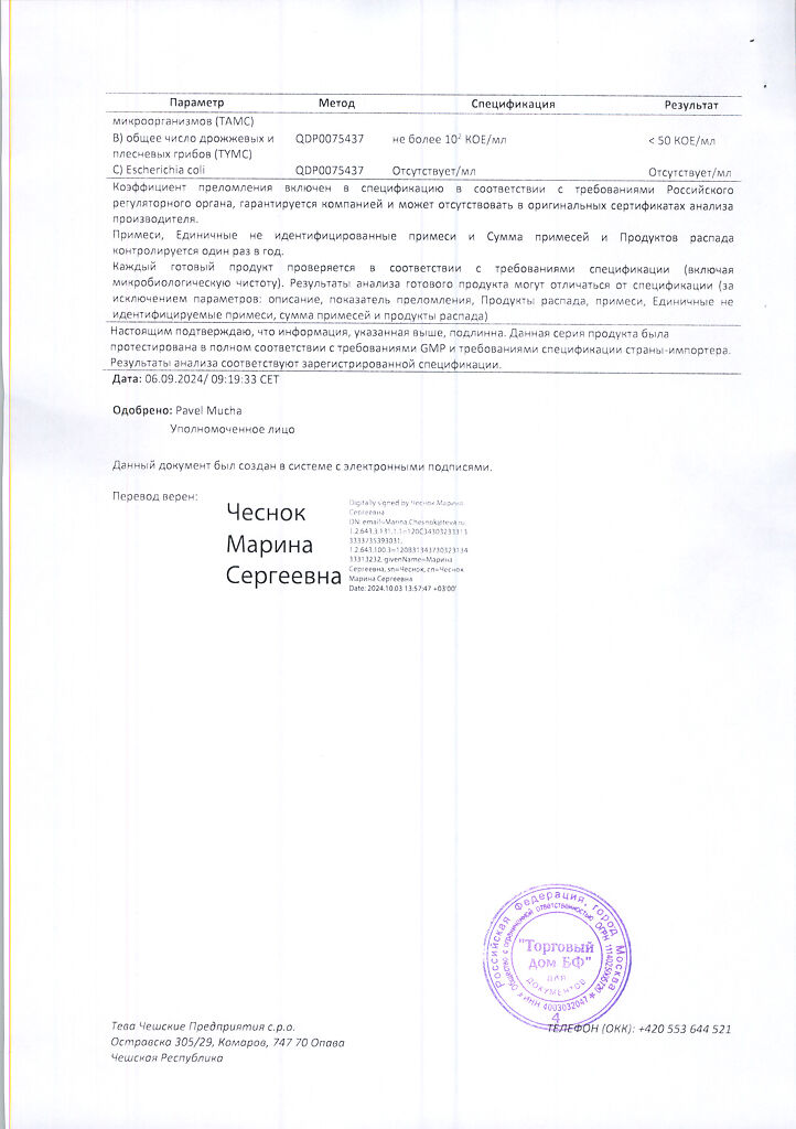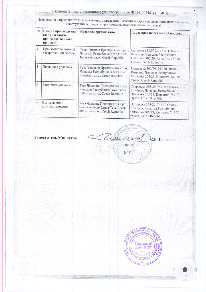 Производитель: Тева Чешские Предприятия с.р.о., Чешская Республика