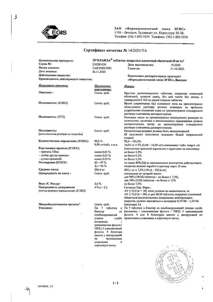 Перед прекращением приема оланзапина следует постепенно снижать дозу. Максимальная суточная доза оланзапина 20 мг.