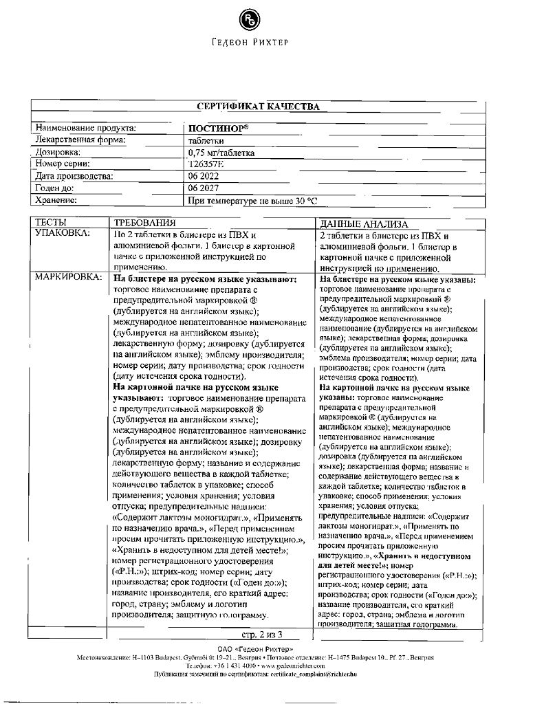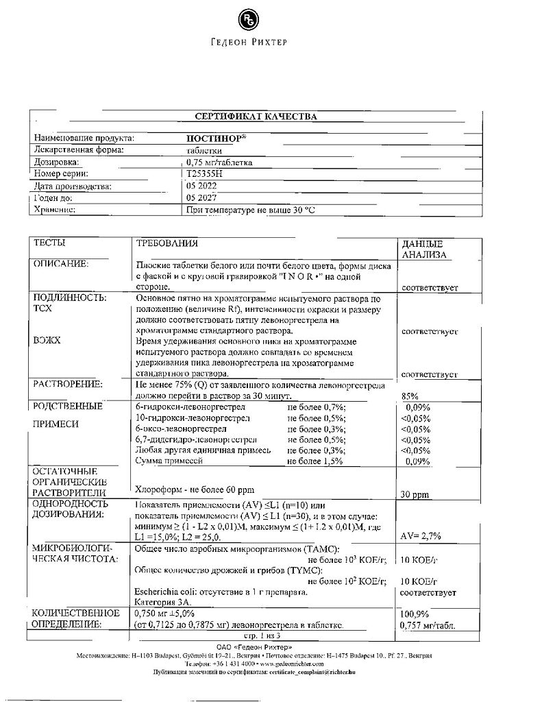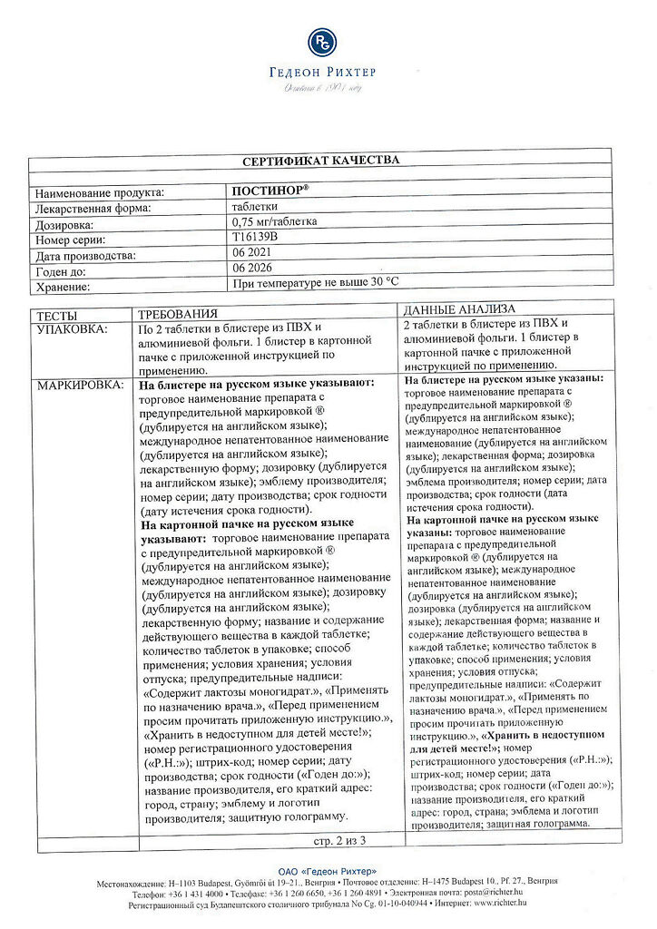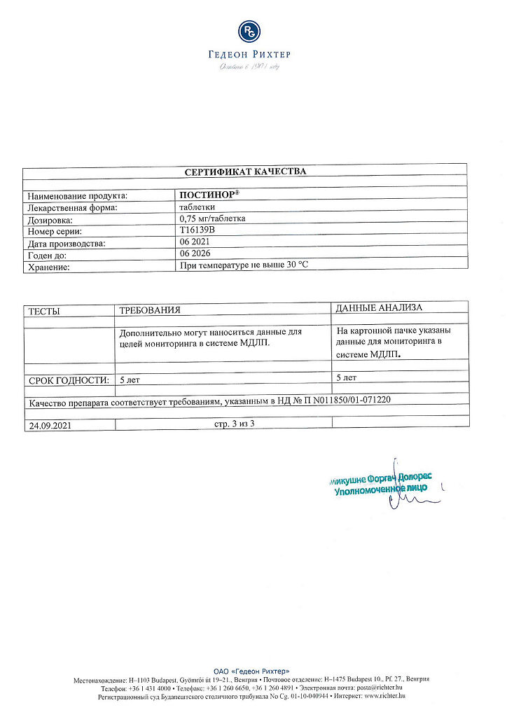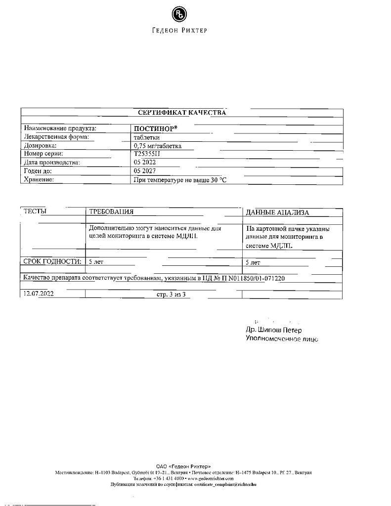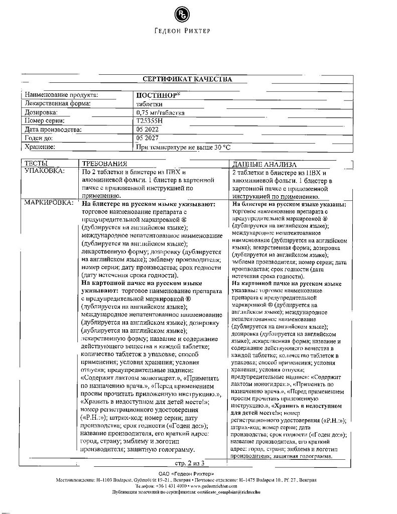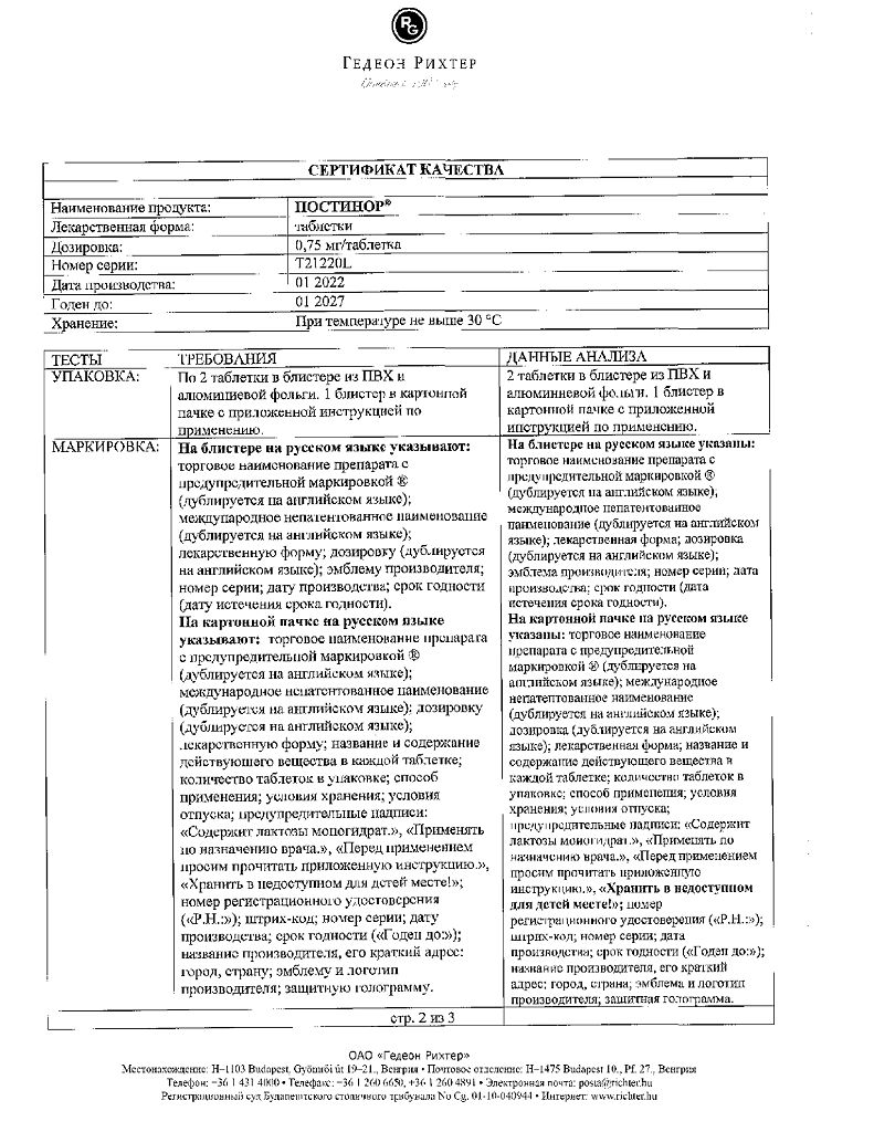 Документы Постинор таблетки 0,75 мг 2 шт