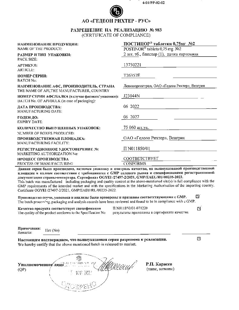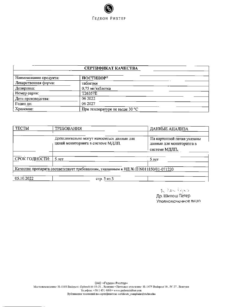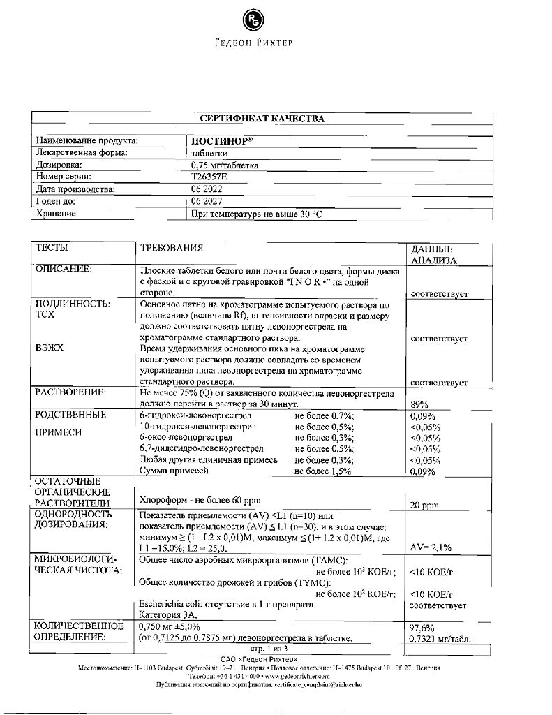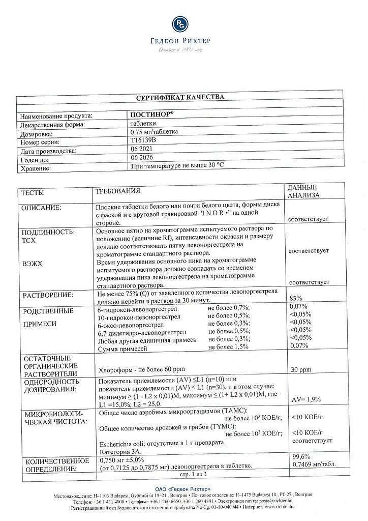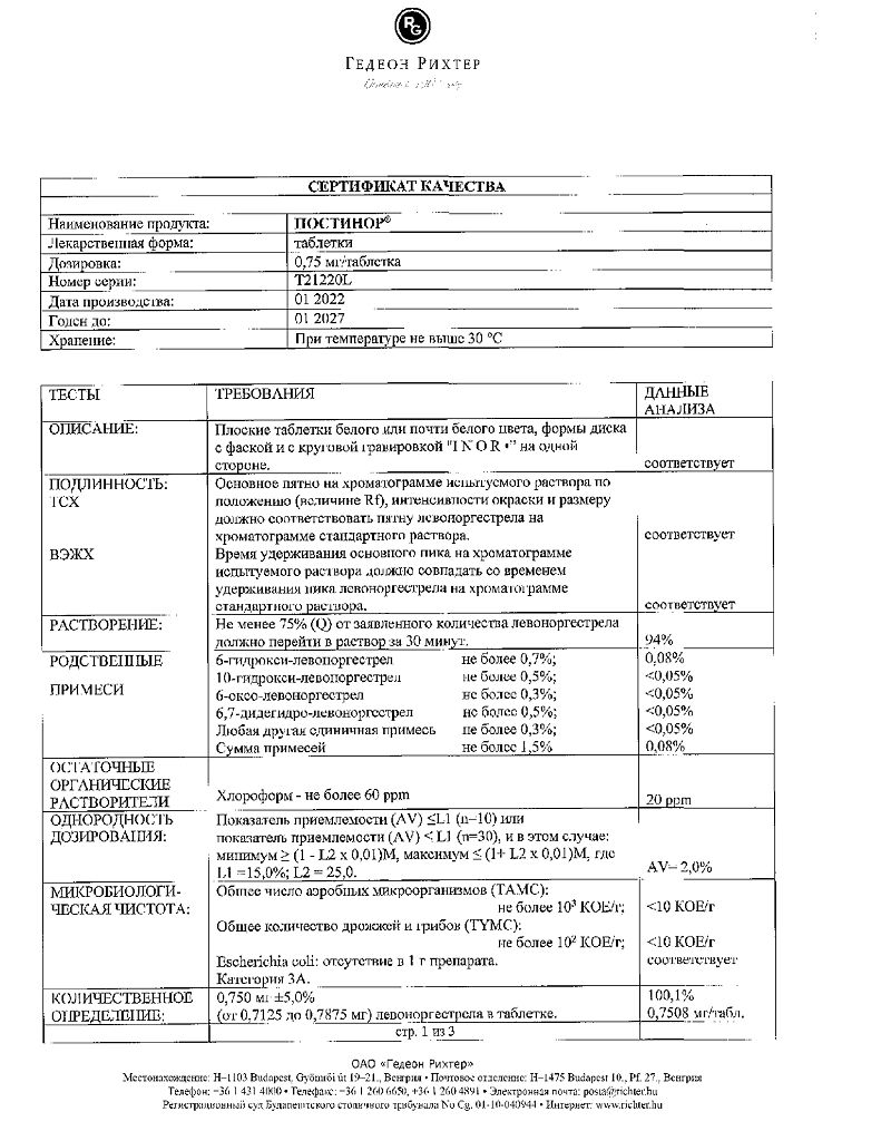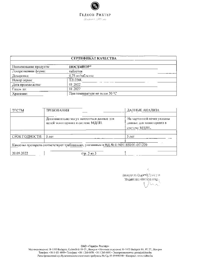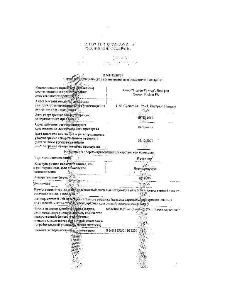 Документы Постинор таблетки 0,75 мг 2 шт
