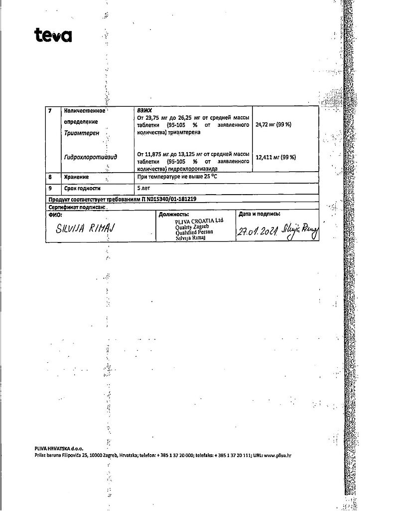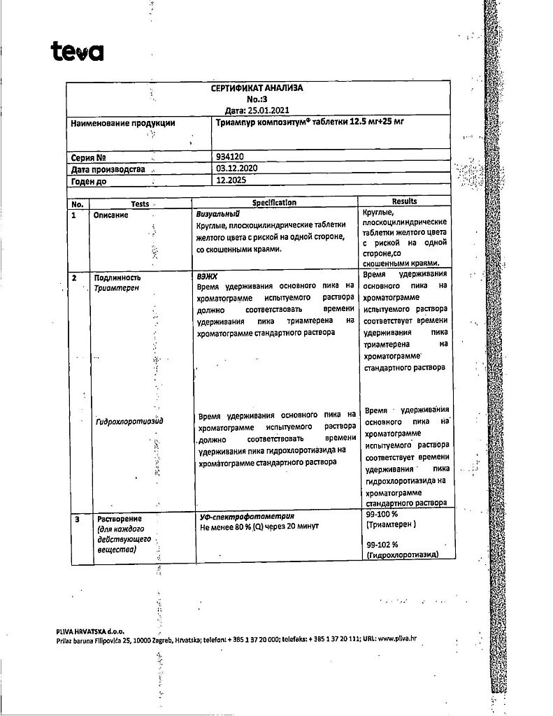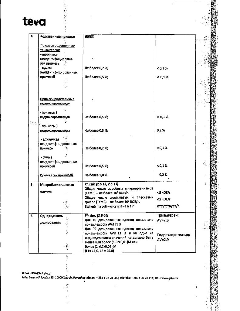 Действующее вещество: Гидрохлоротиазид, Триамтерен