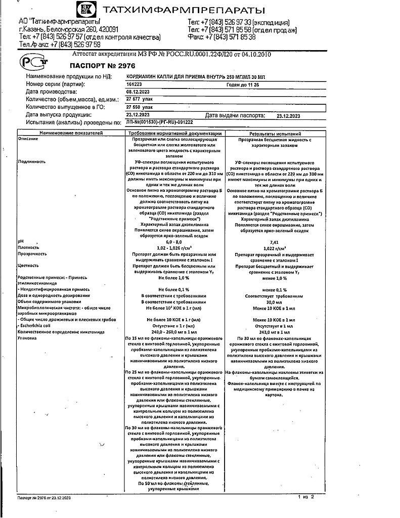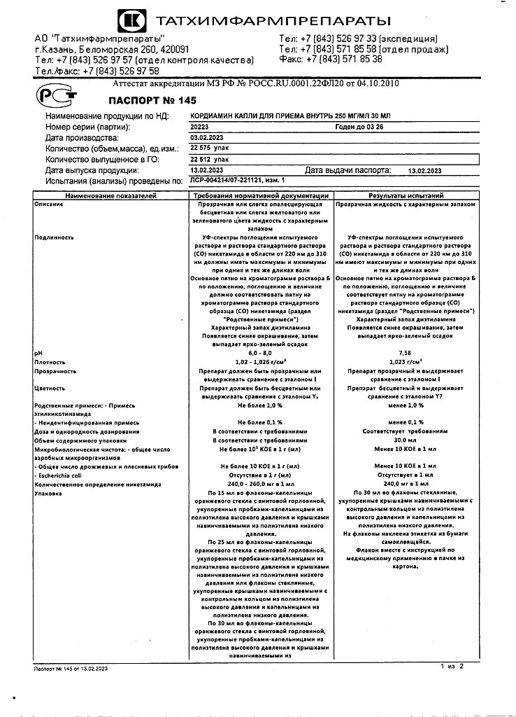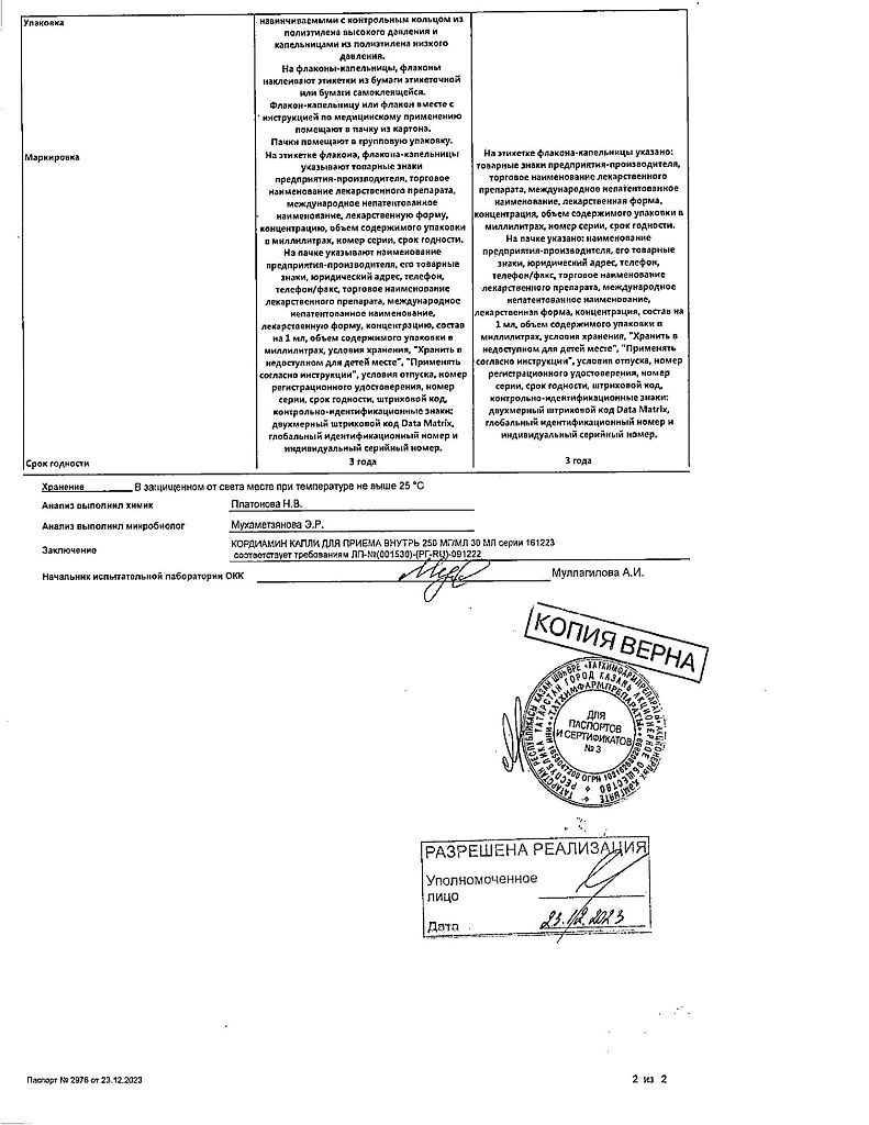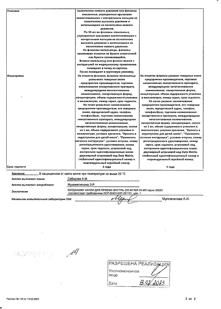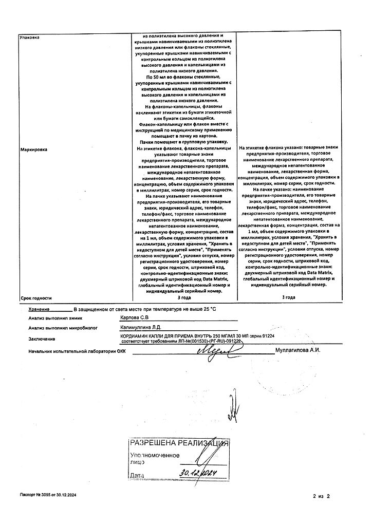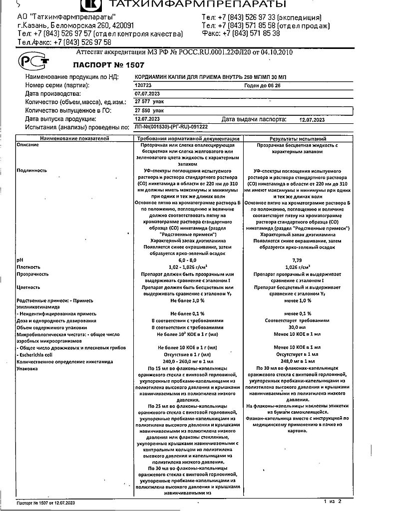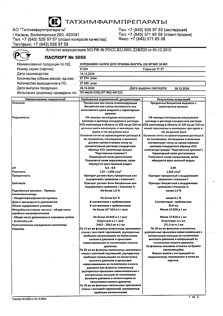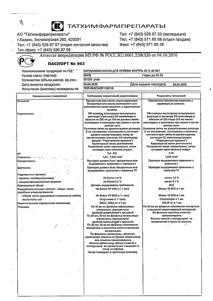 Документы Кордиамин капли для приема внутрь 25 % 30 мл 1 шт