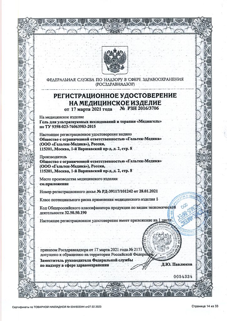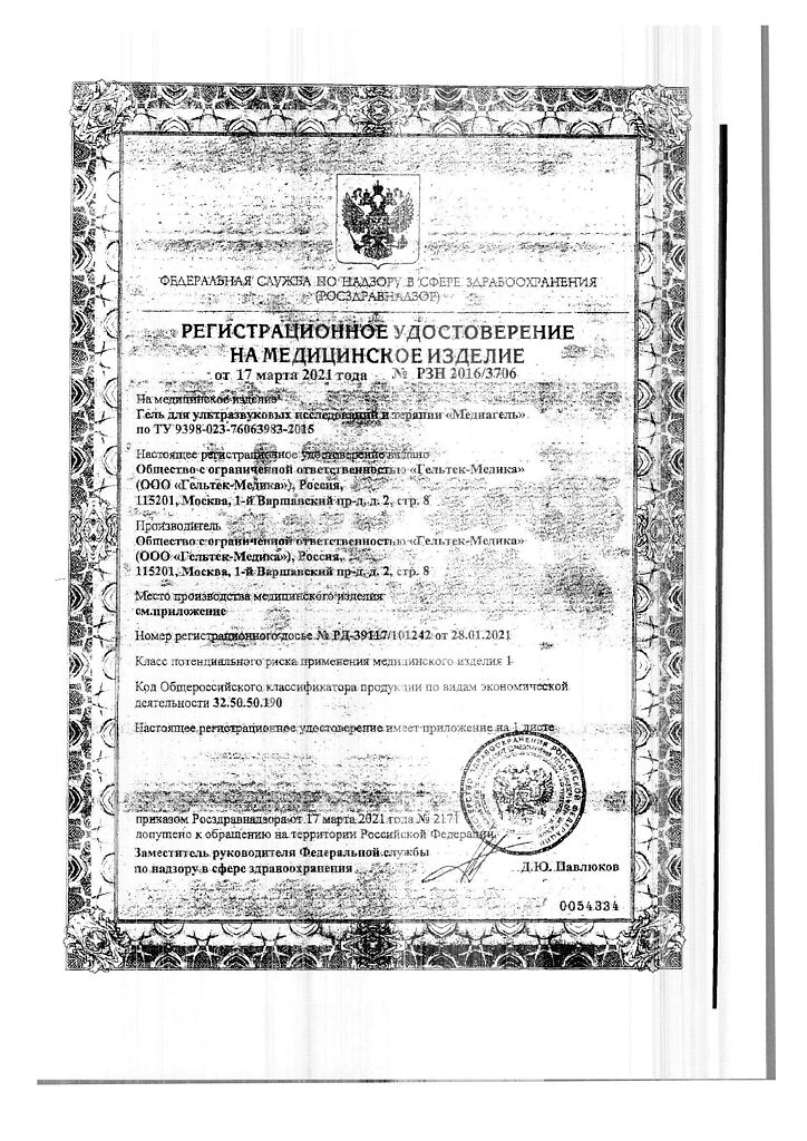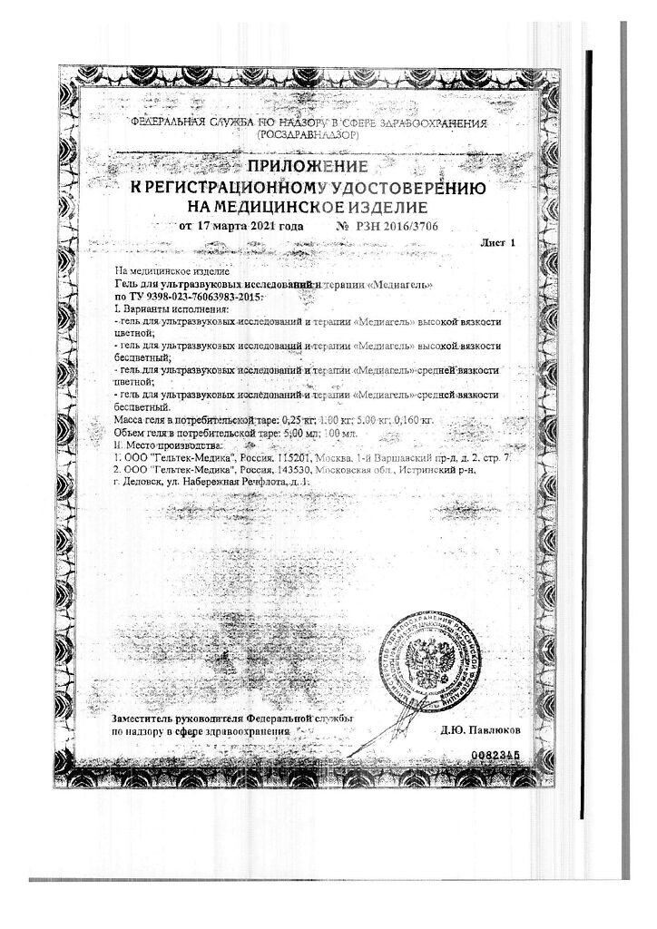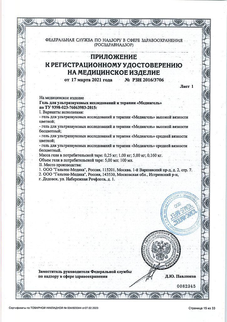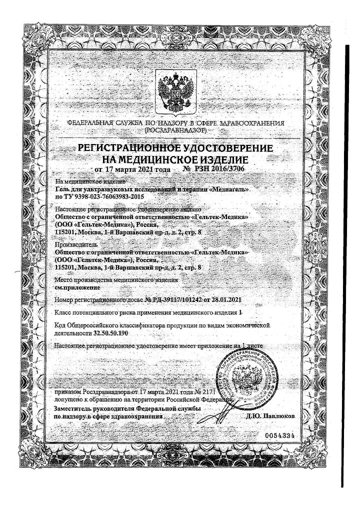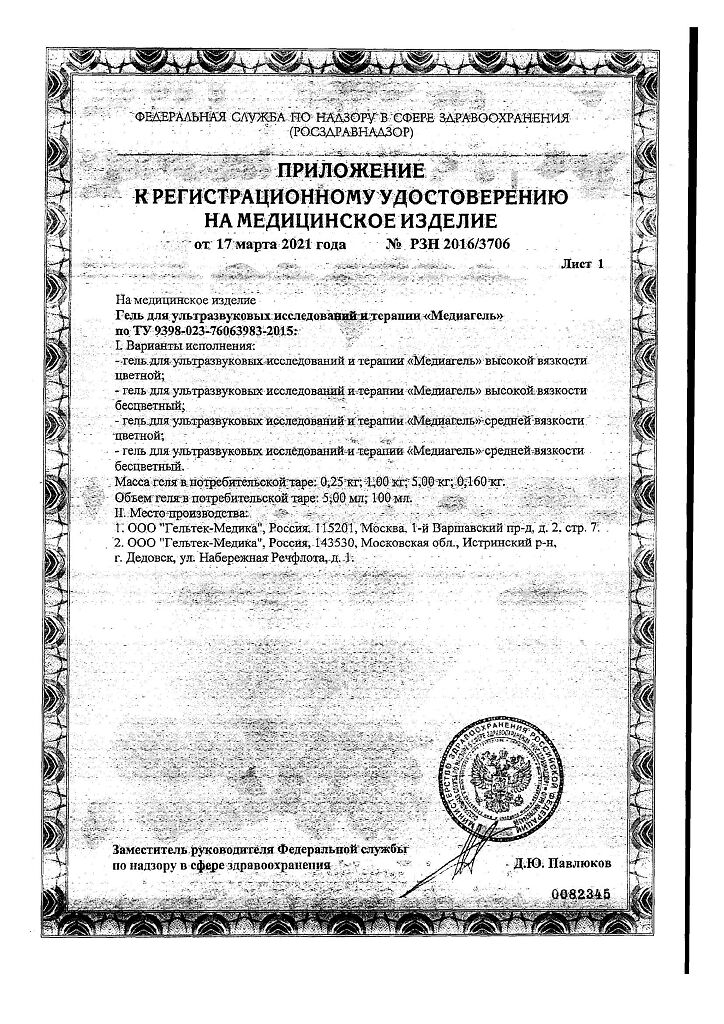 Документы Медиагель гель для УЗИ средней вязкости, бесцветный 250 г 1 шт