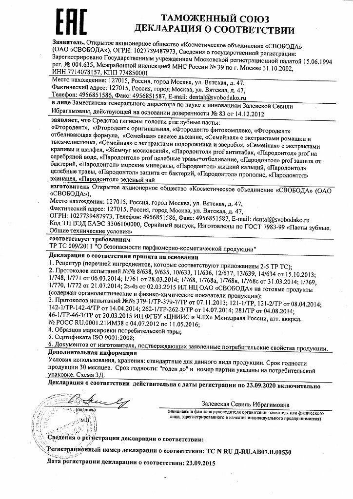 Документы Пародонтол Зубная паста Экстракт зеленого чая 63 г 1 шт