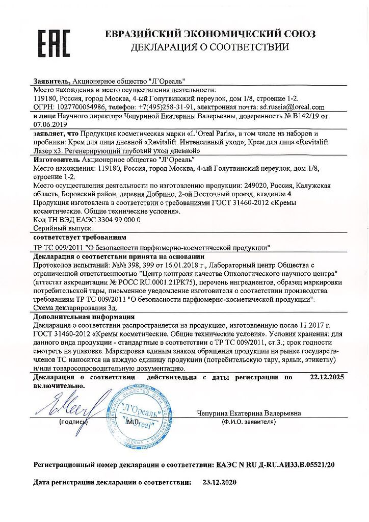 Все варианты Крем Лореаль Dermo-Expertise Revitalift