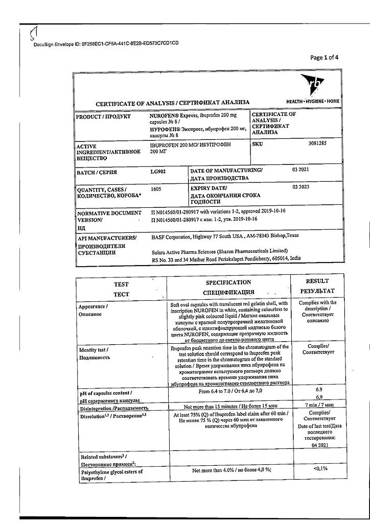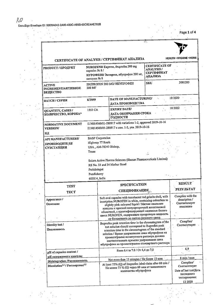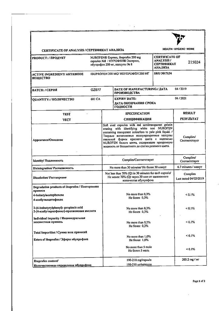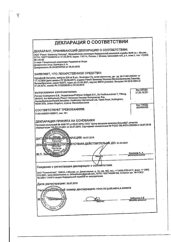 Документы Нурофен Экспресс капсулы 200 мг 8 шт