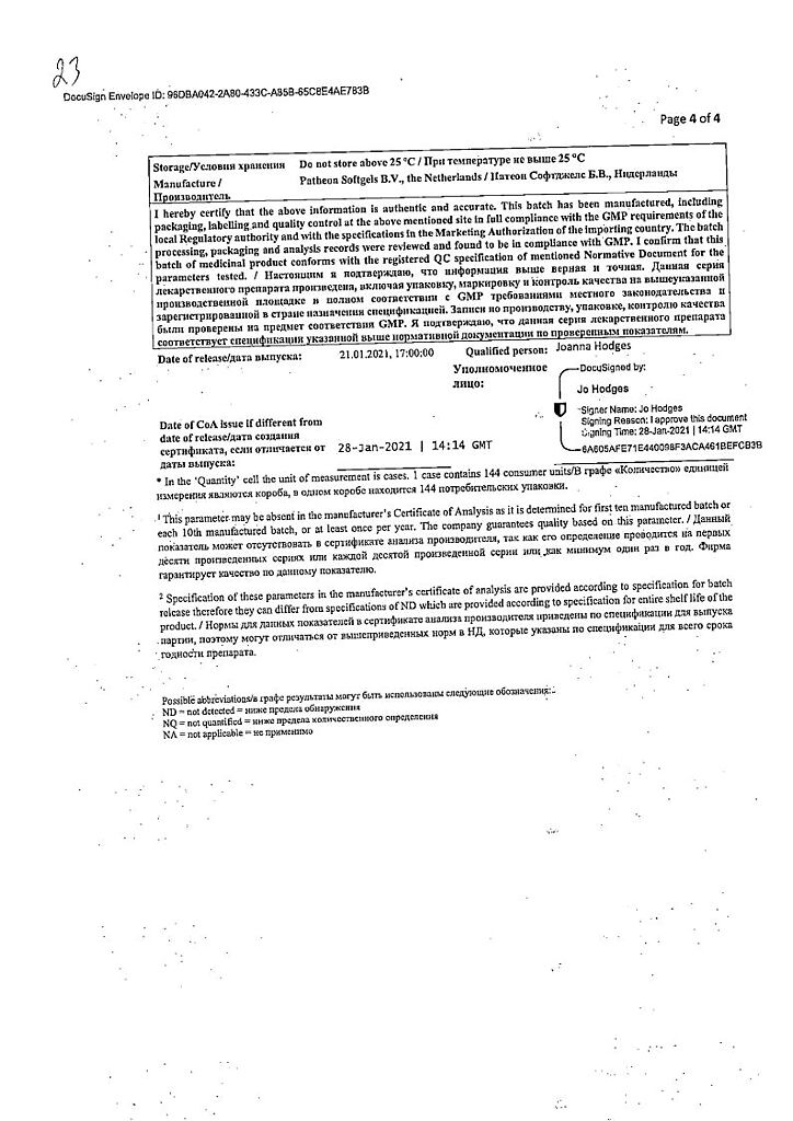 Производитель: Патеон Софтджелс Б.В., Нидерланды