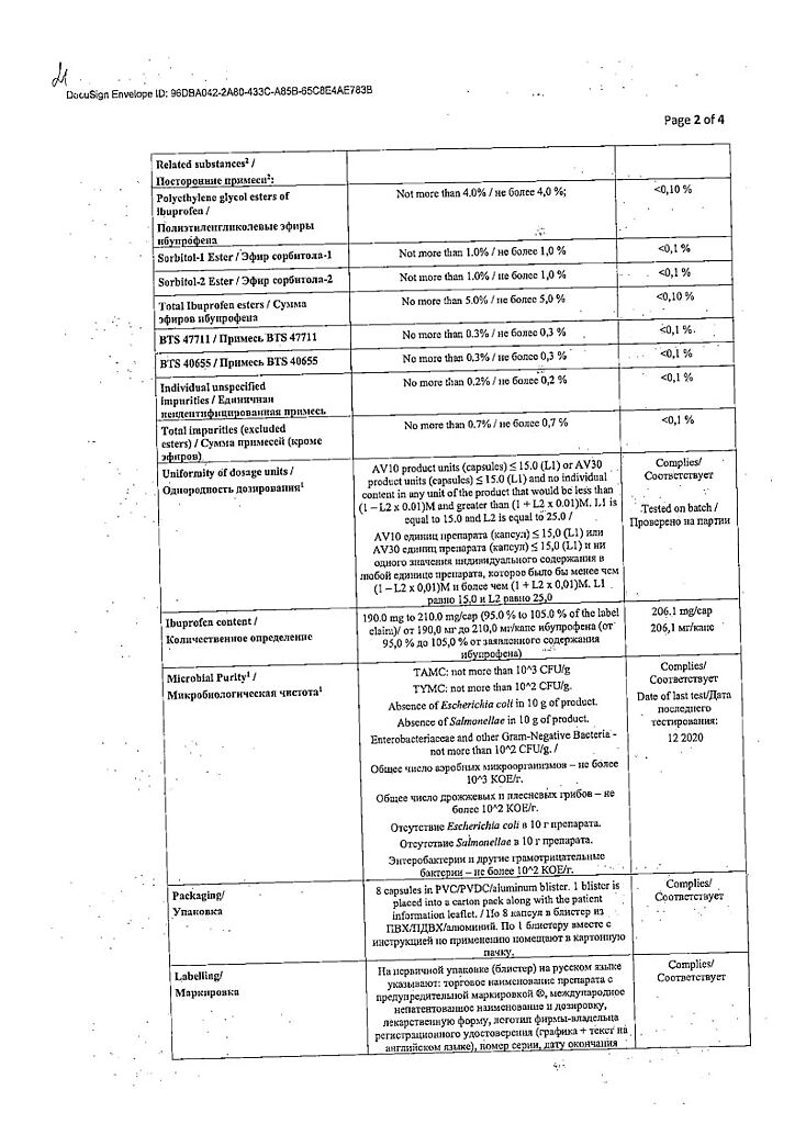 ***Инструкция по медицинскому применению: после приема 2 капсул препарата натощак ибупрофен обнаруживается в плазме крови через 10 минут