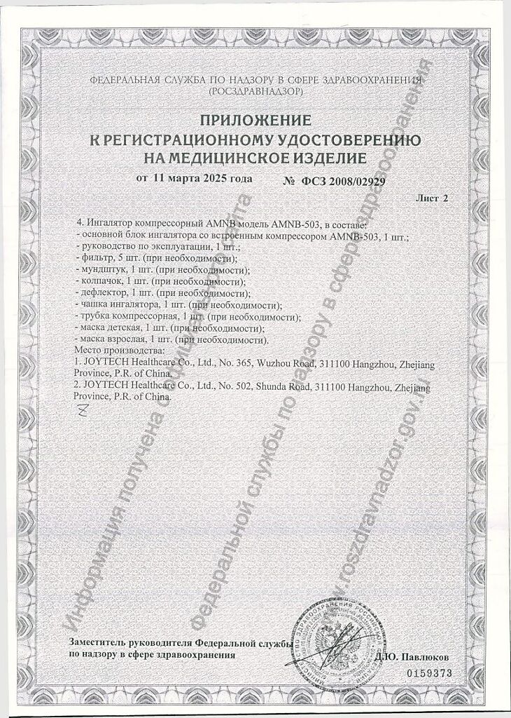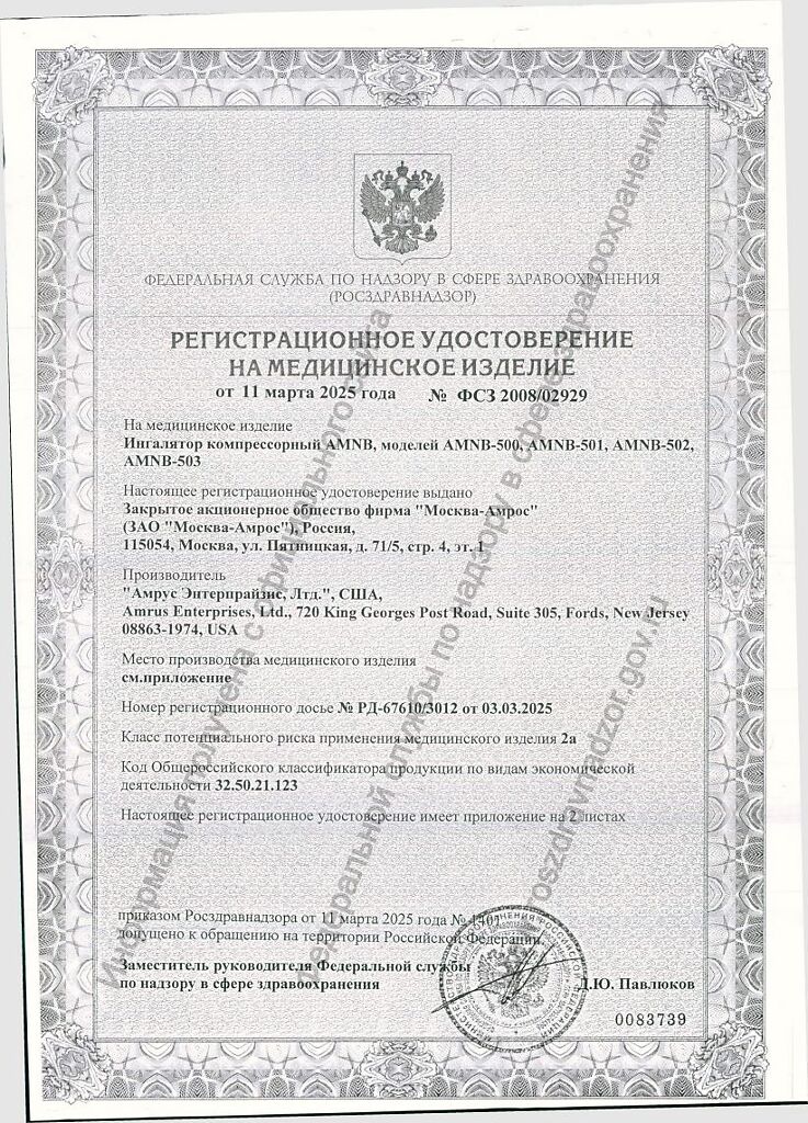 Документы Ингалятор Amrus АМNB-503 компрессорный Формула Здоровья небулайзер 1 шт