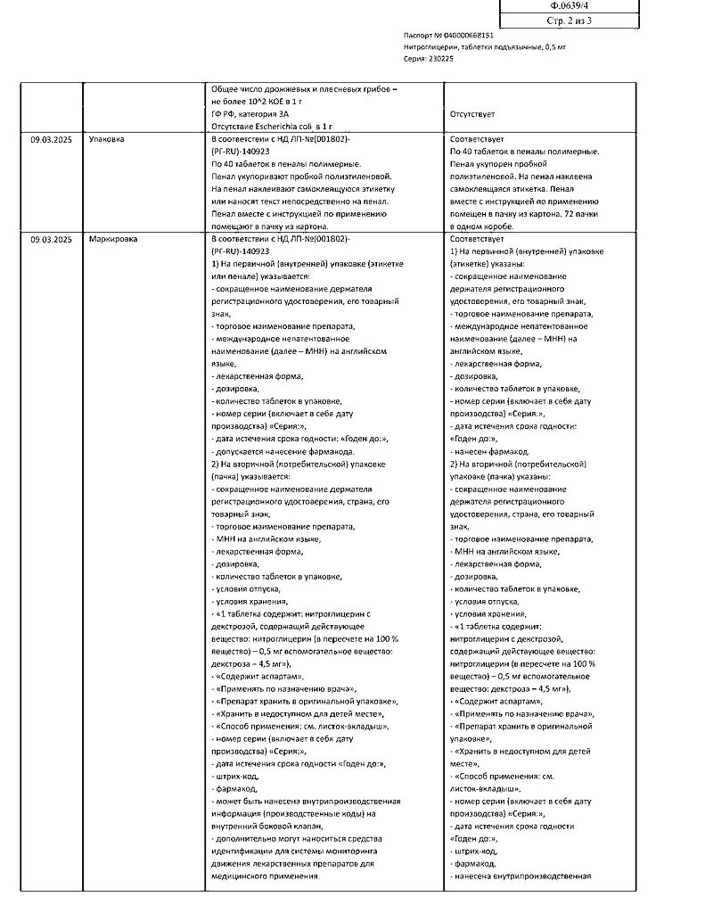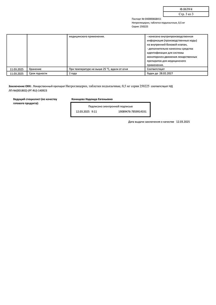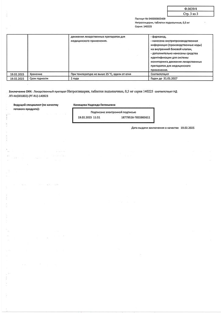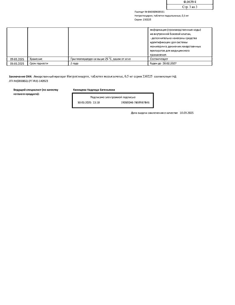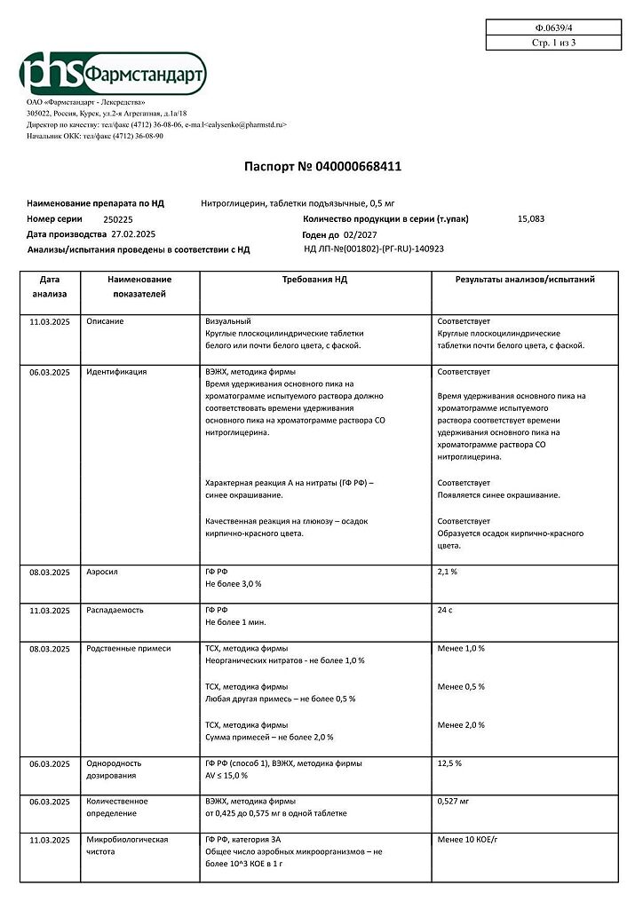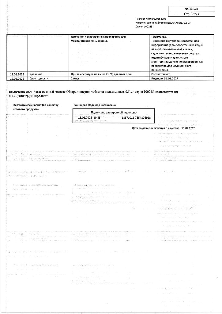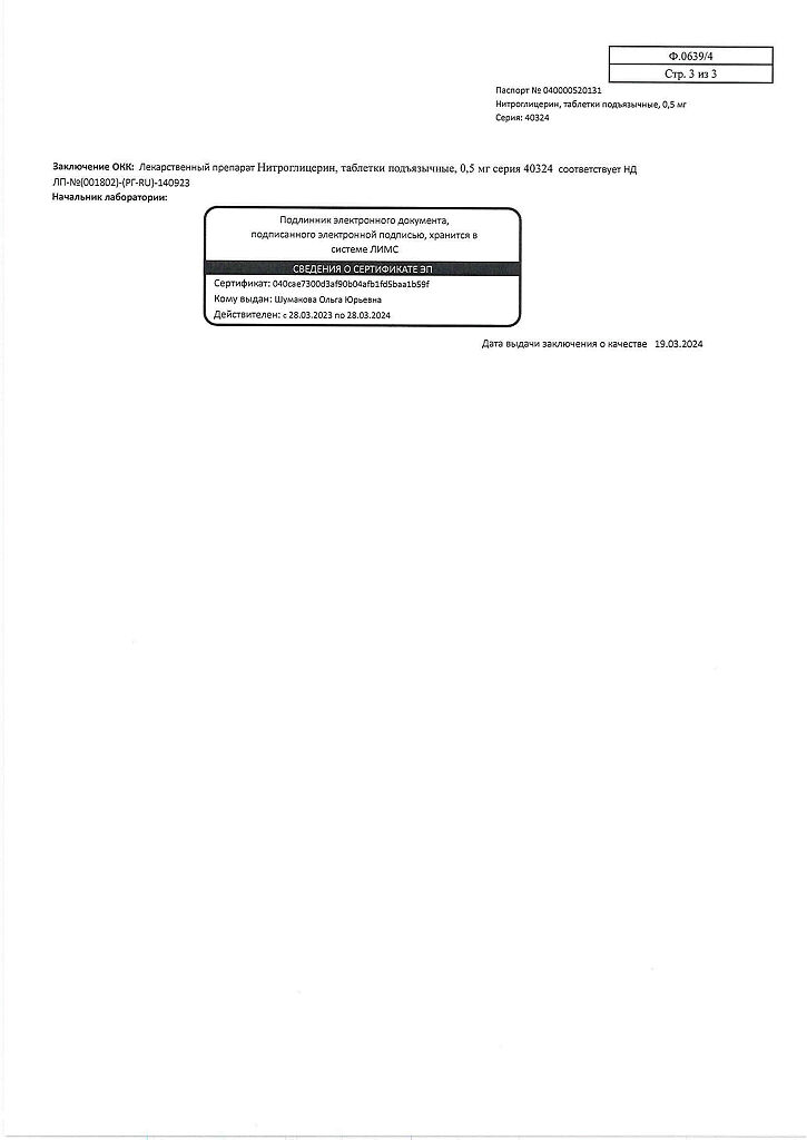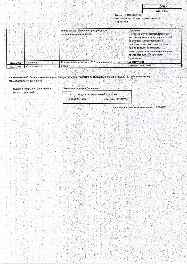 Действующее вещество: Нитроглицерин