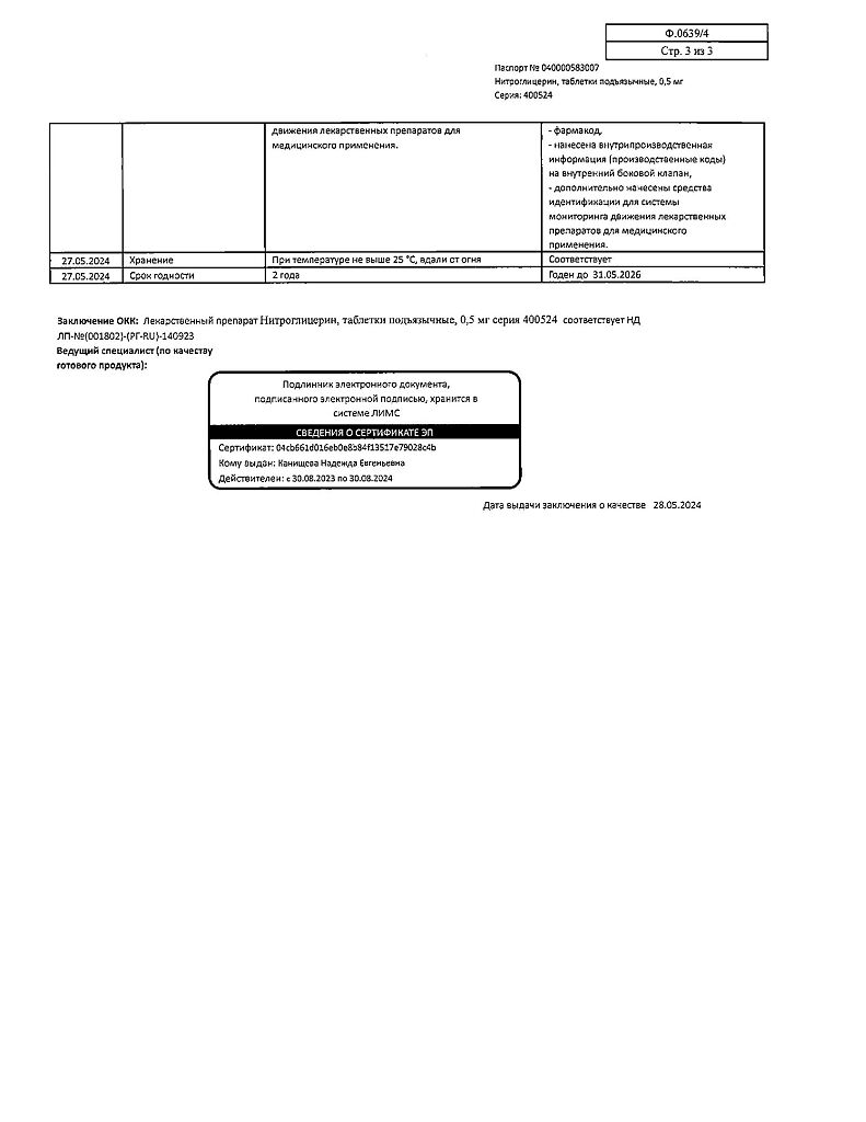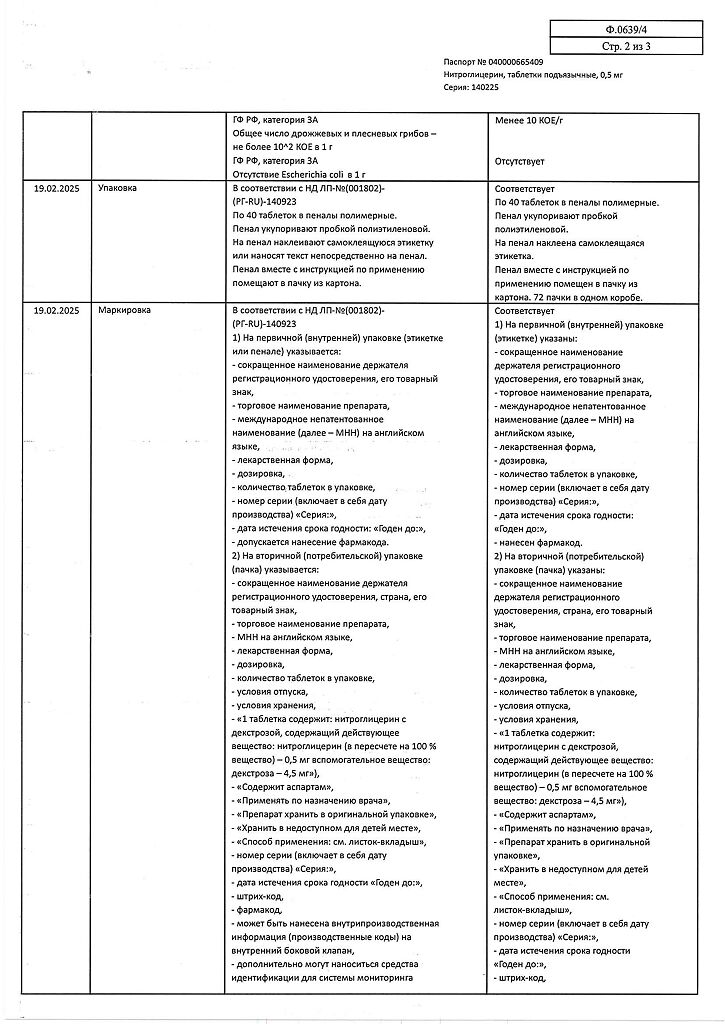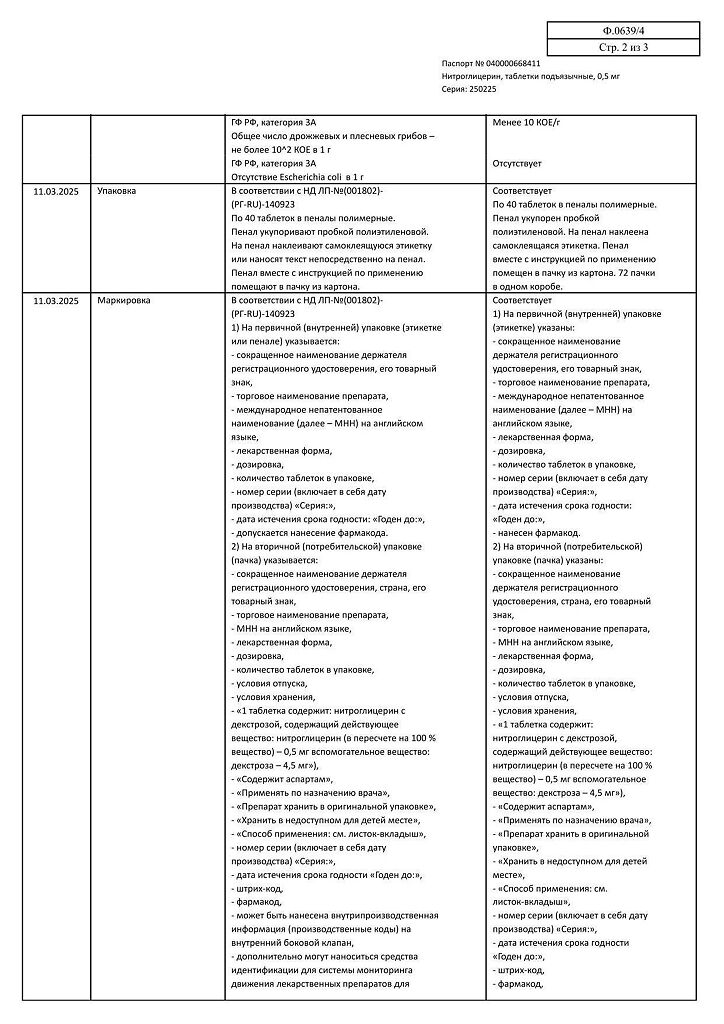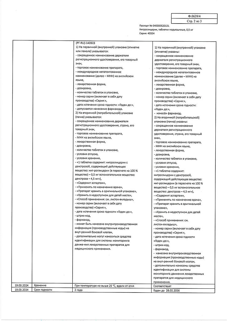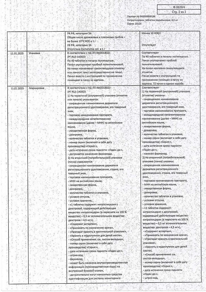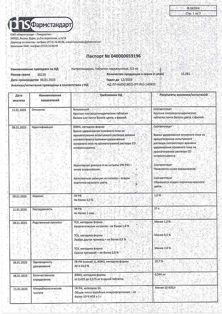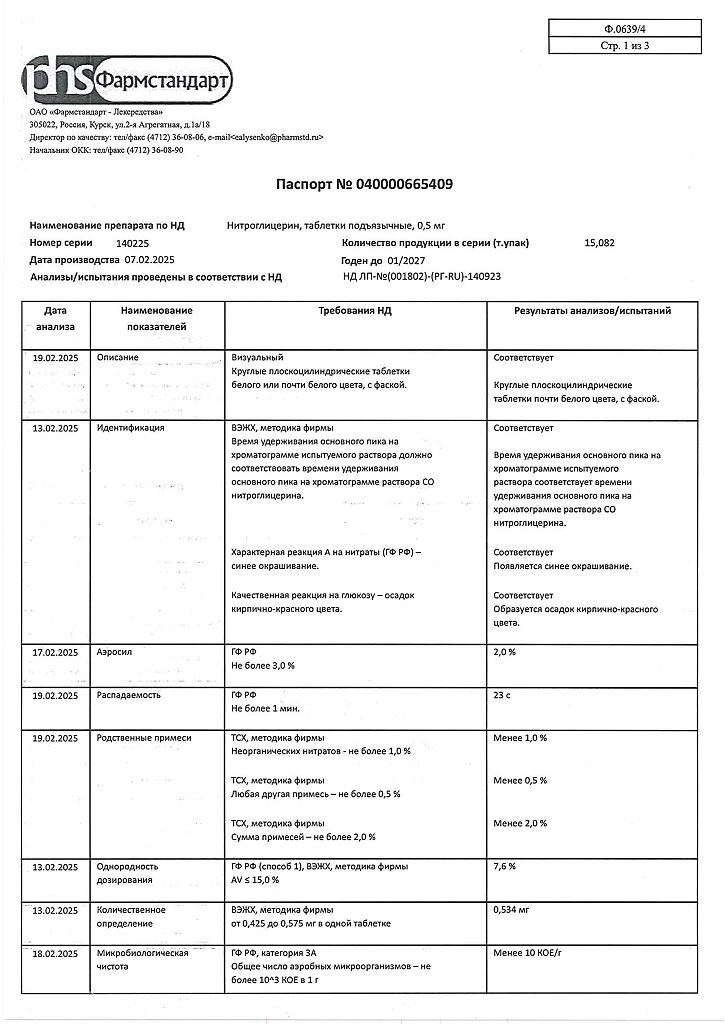 Действующее вещество: Нитроглицерин