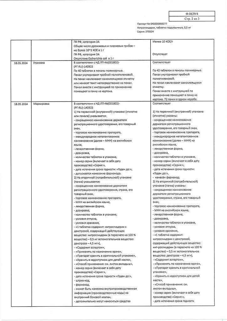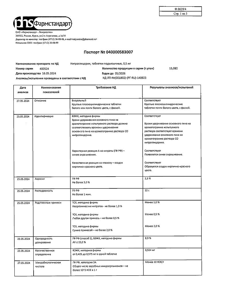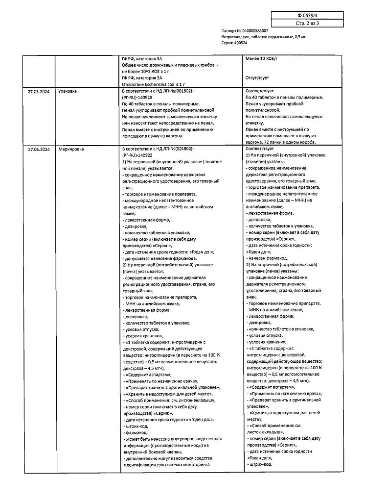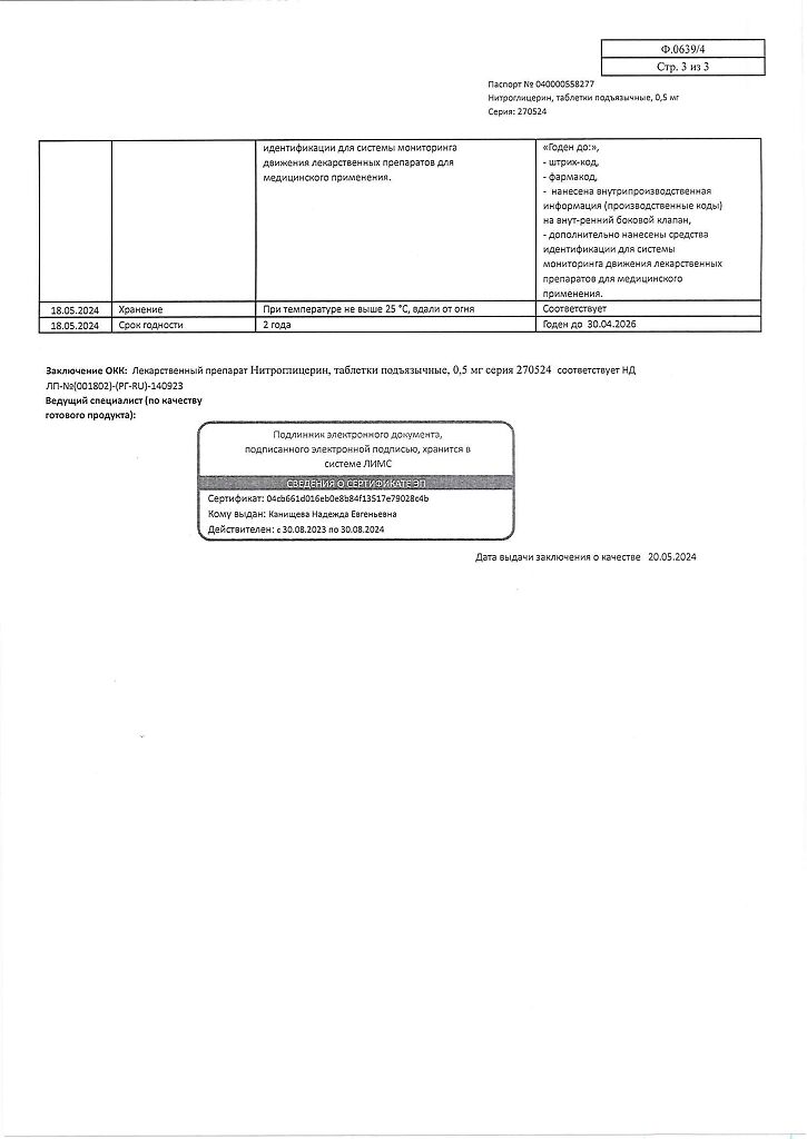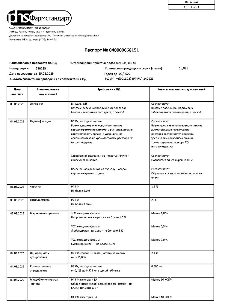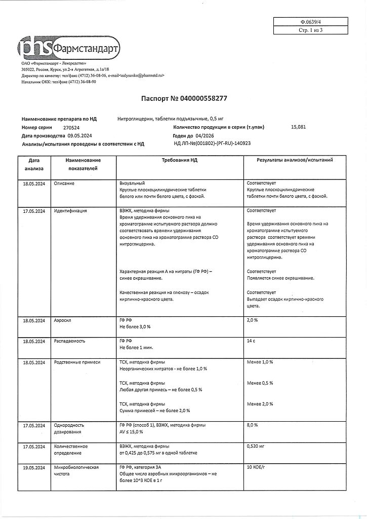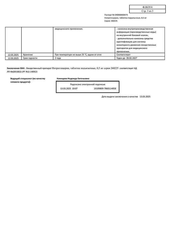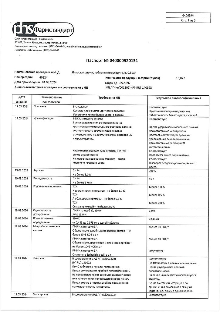 Действующее вещество: Нитроглицерин