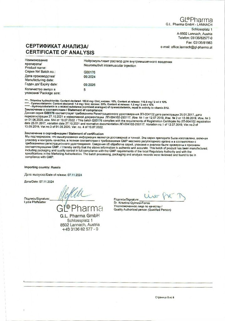 Производитель: Г.Л.Фарма ГмбХ, Австрия